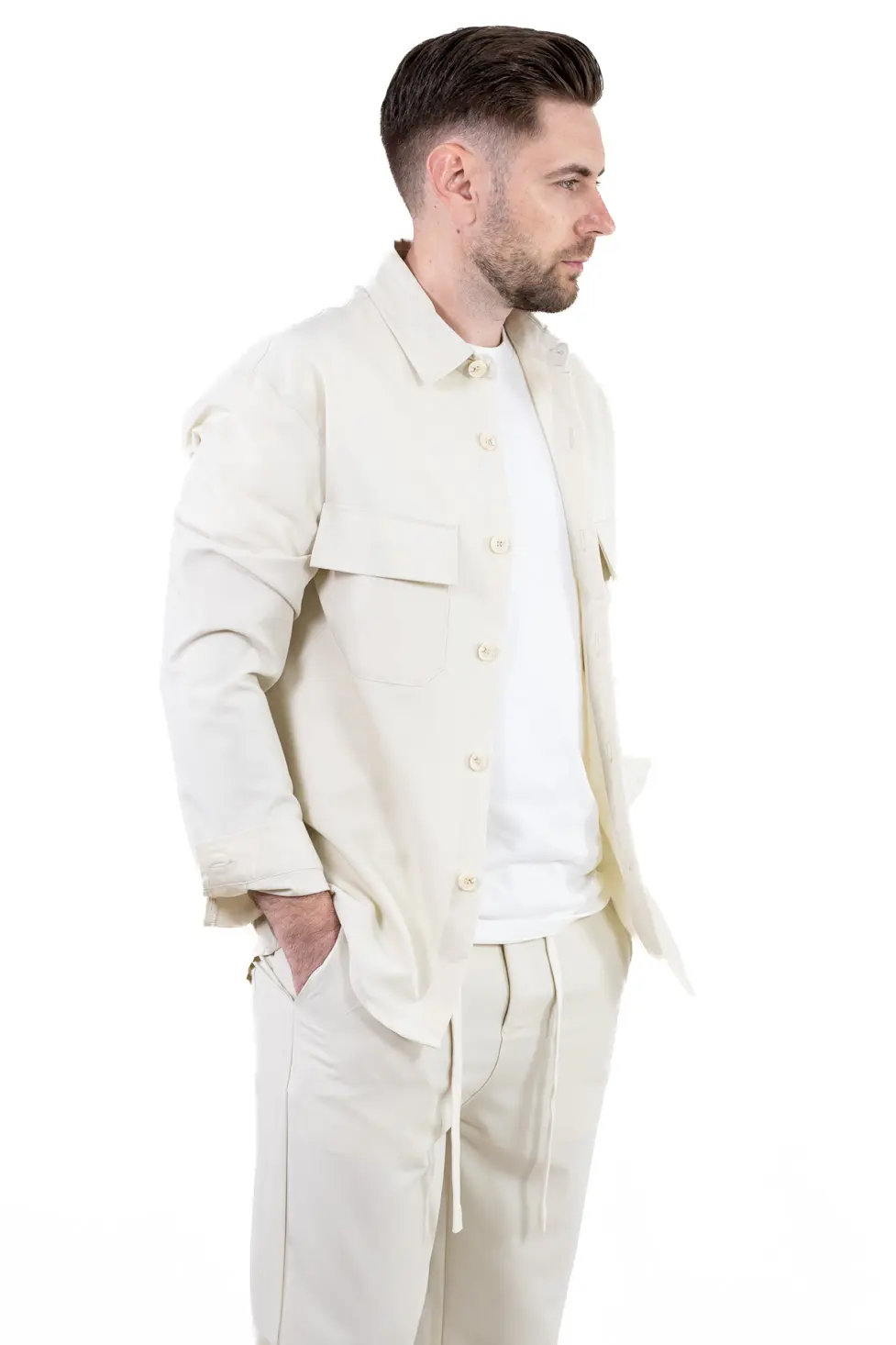 Alege confortul suprem în sezonul cald cu acest compleu lejer, aerisit și plăcut la purtare. Setul este compus dintr-o cămașă cu guler clasic, croită lejer, și pantaloni cu șnur reglabil în talie, pentru o potrivire relaxată.