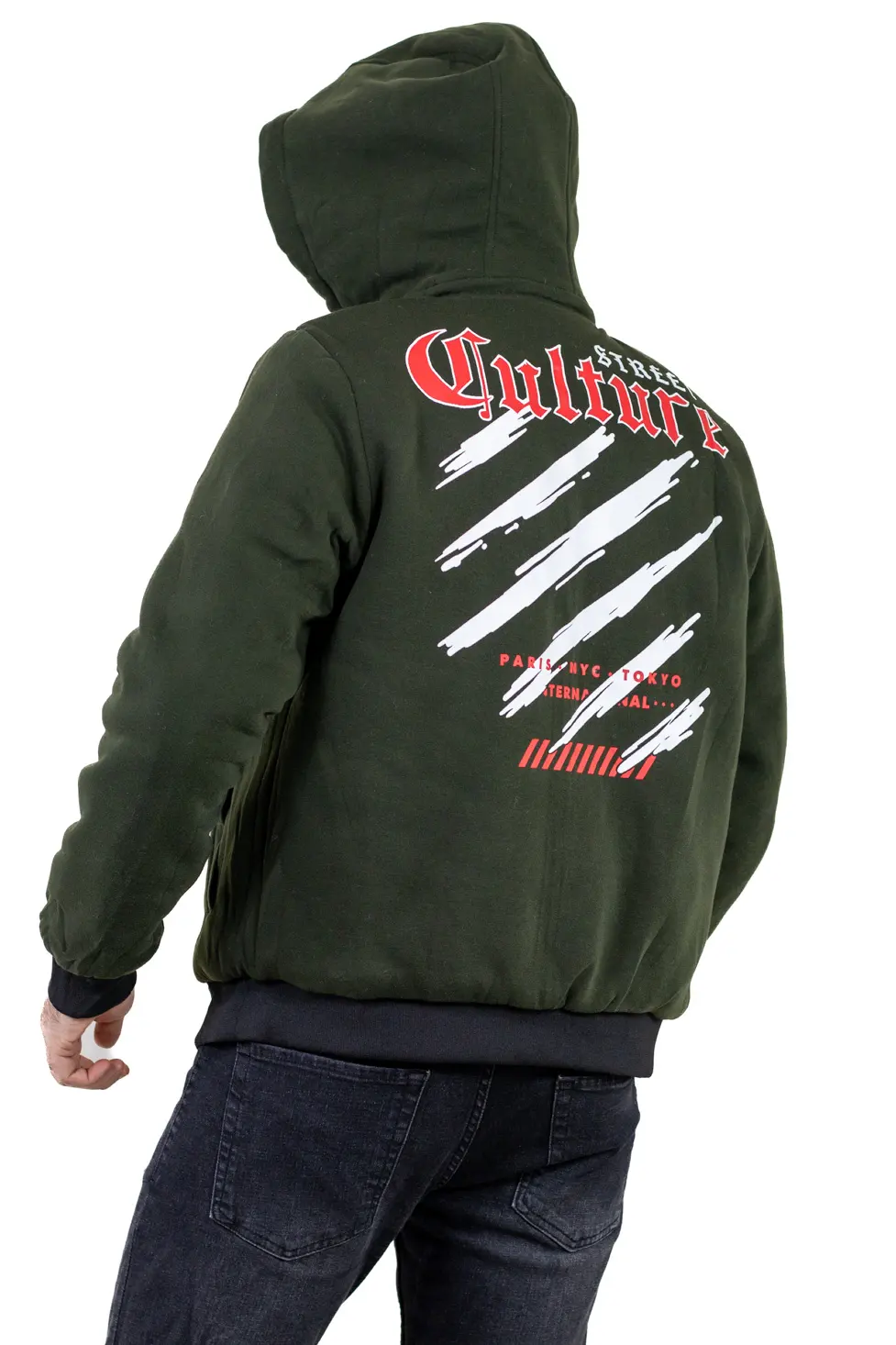 Partea verde este realizată din bumbac moale, cu imprimeu modern Street Culture pe spate, ideală pentru o ținută casual, relaxată.