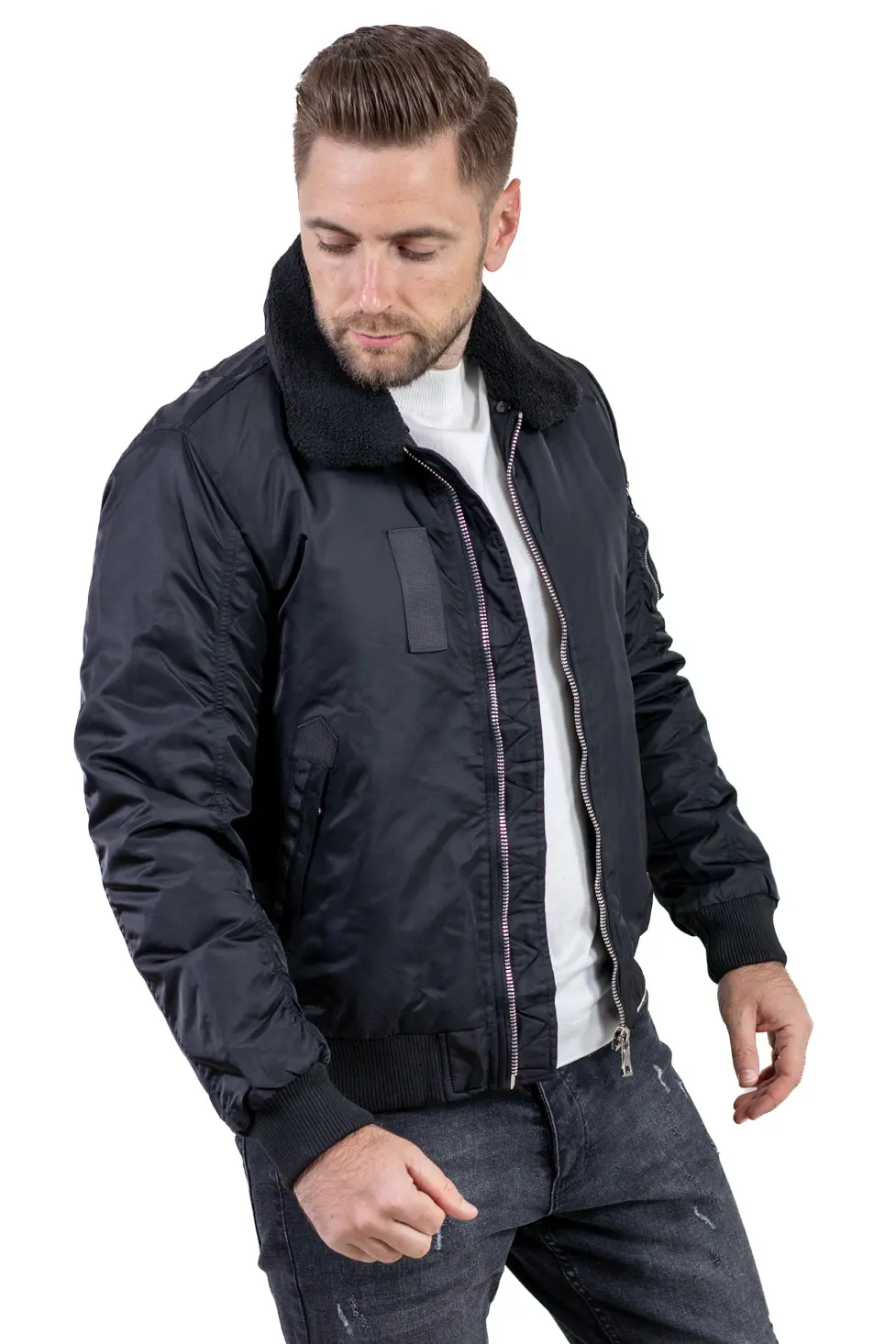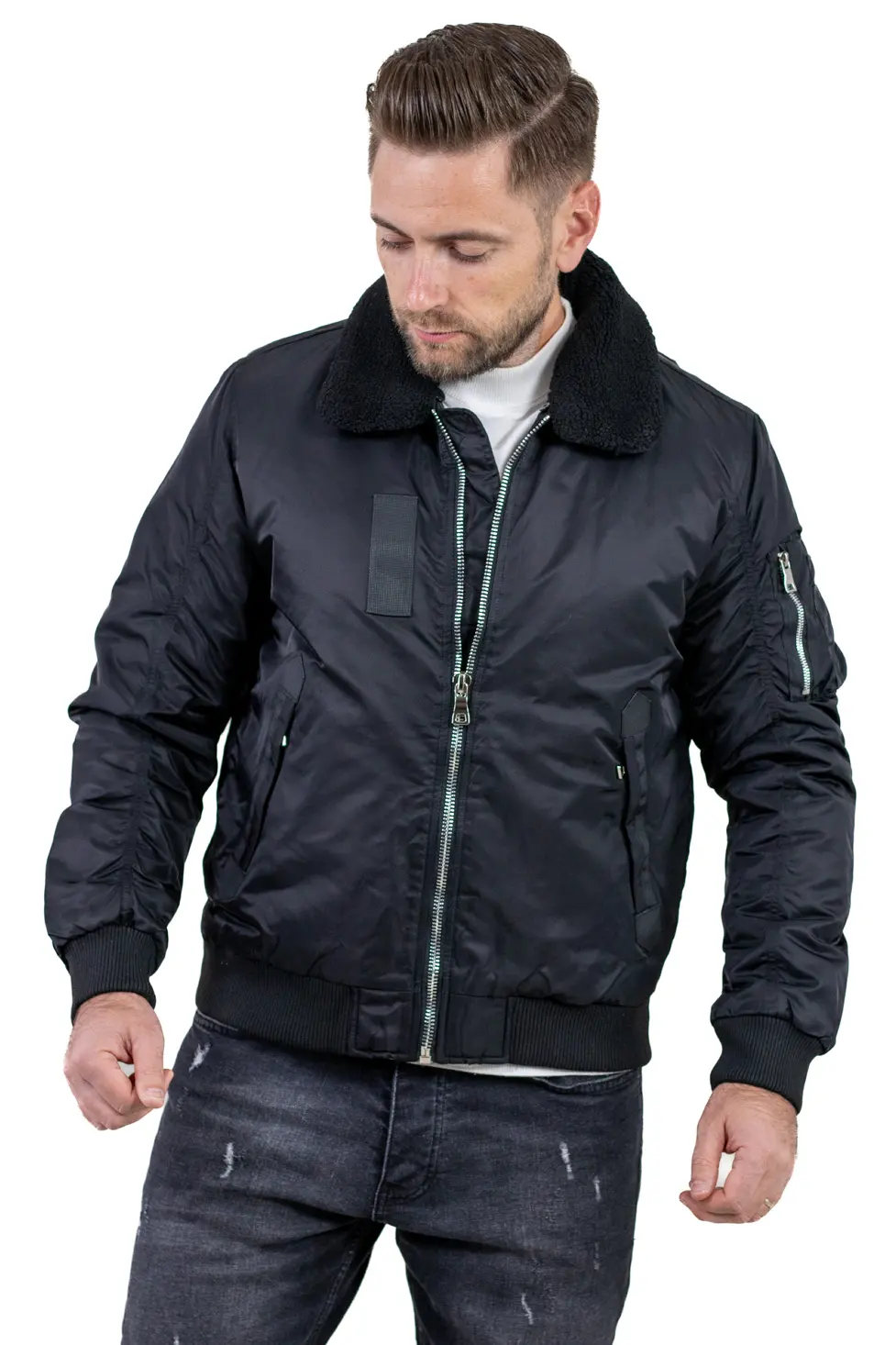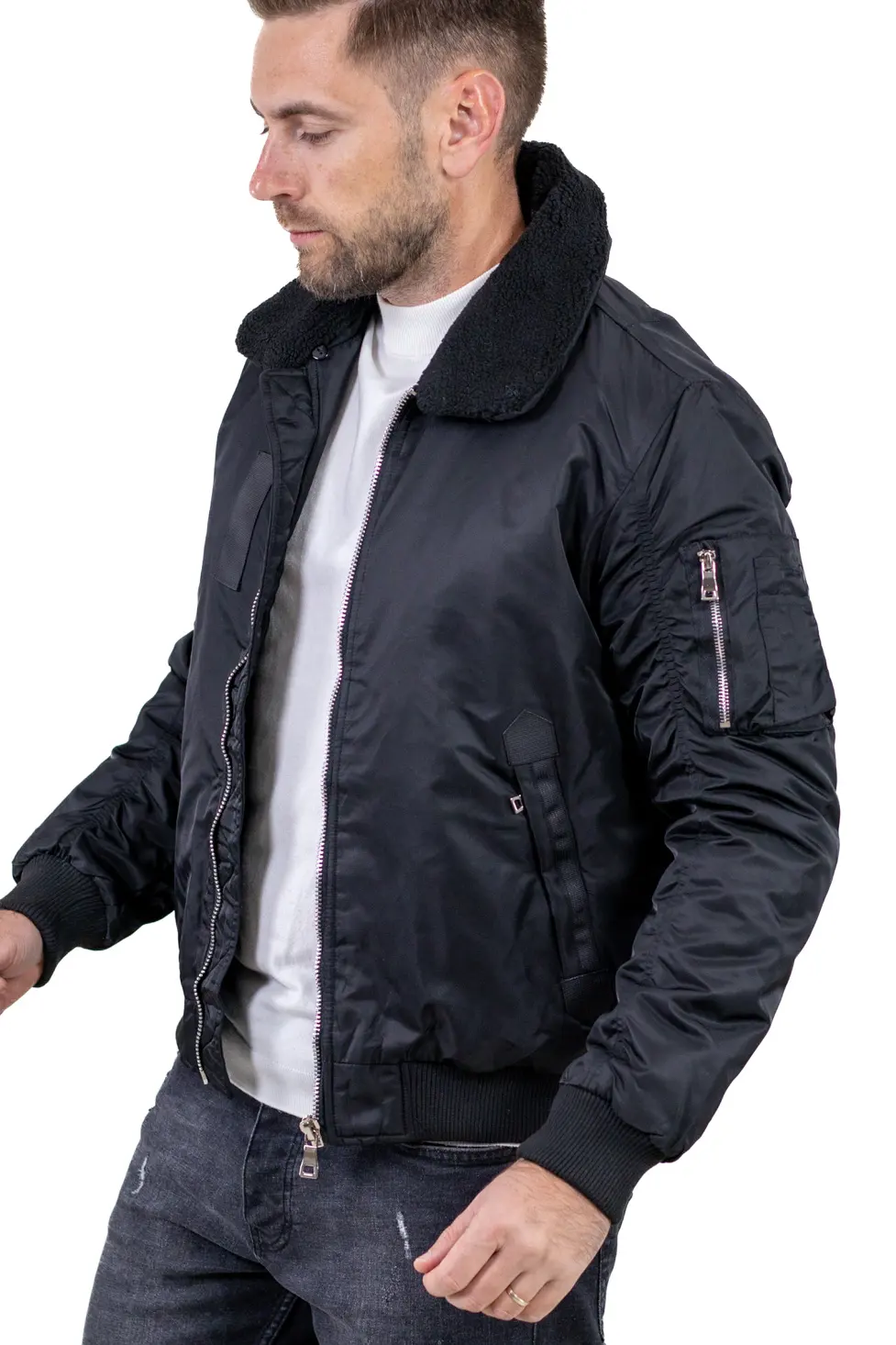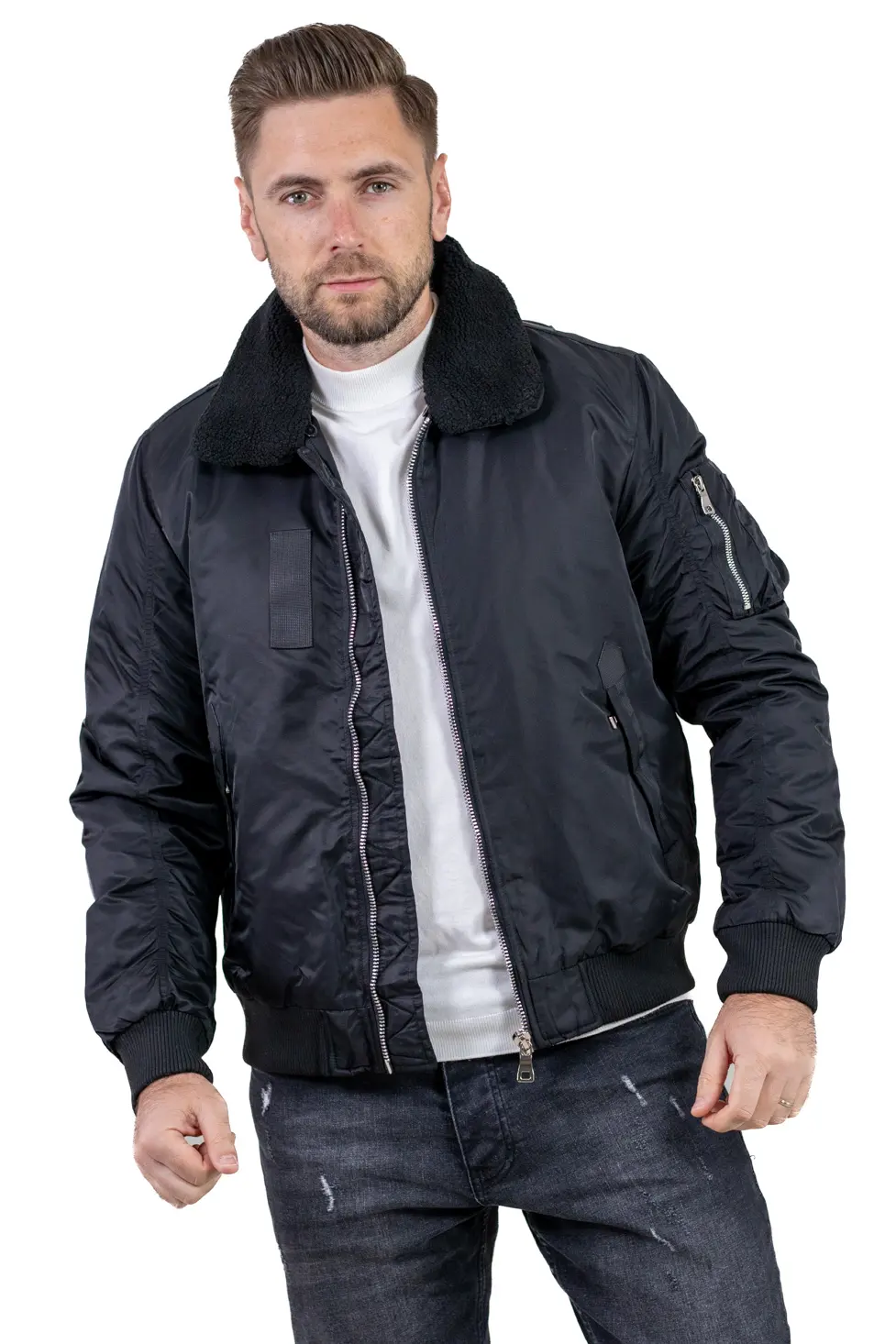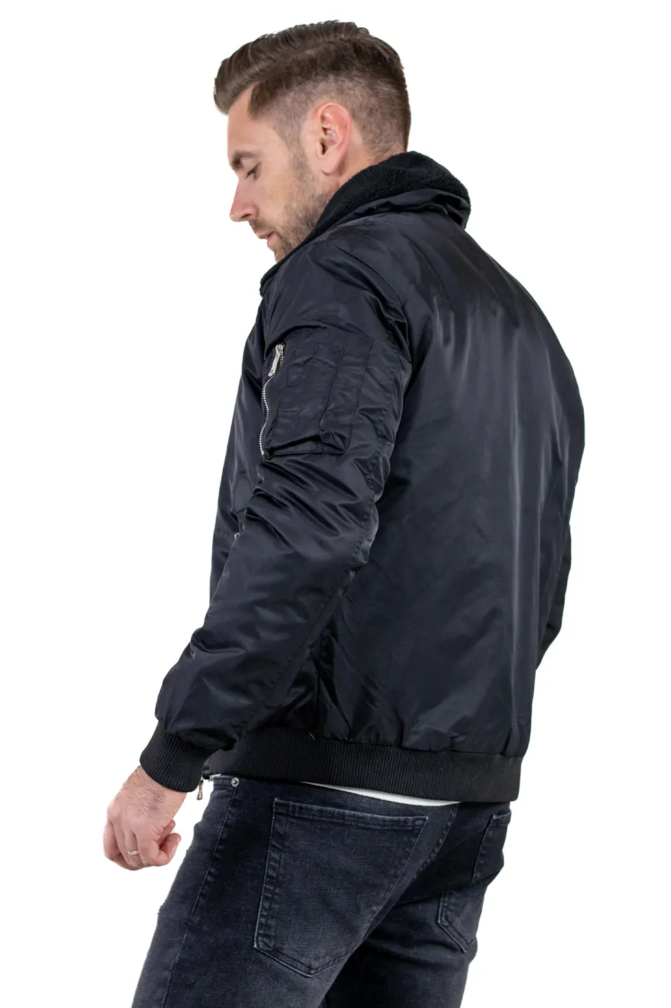 Inspirată din stilul clasic al jachetelor aviatice, această geacă bomber aduce un plus de stil și căldură sezonului rece.