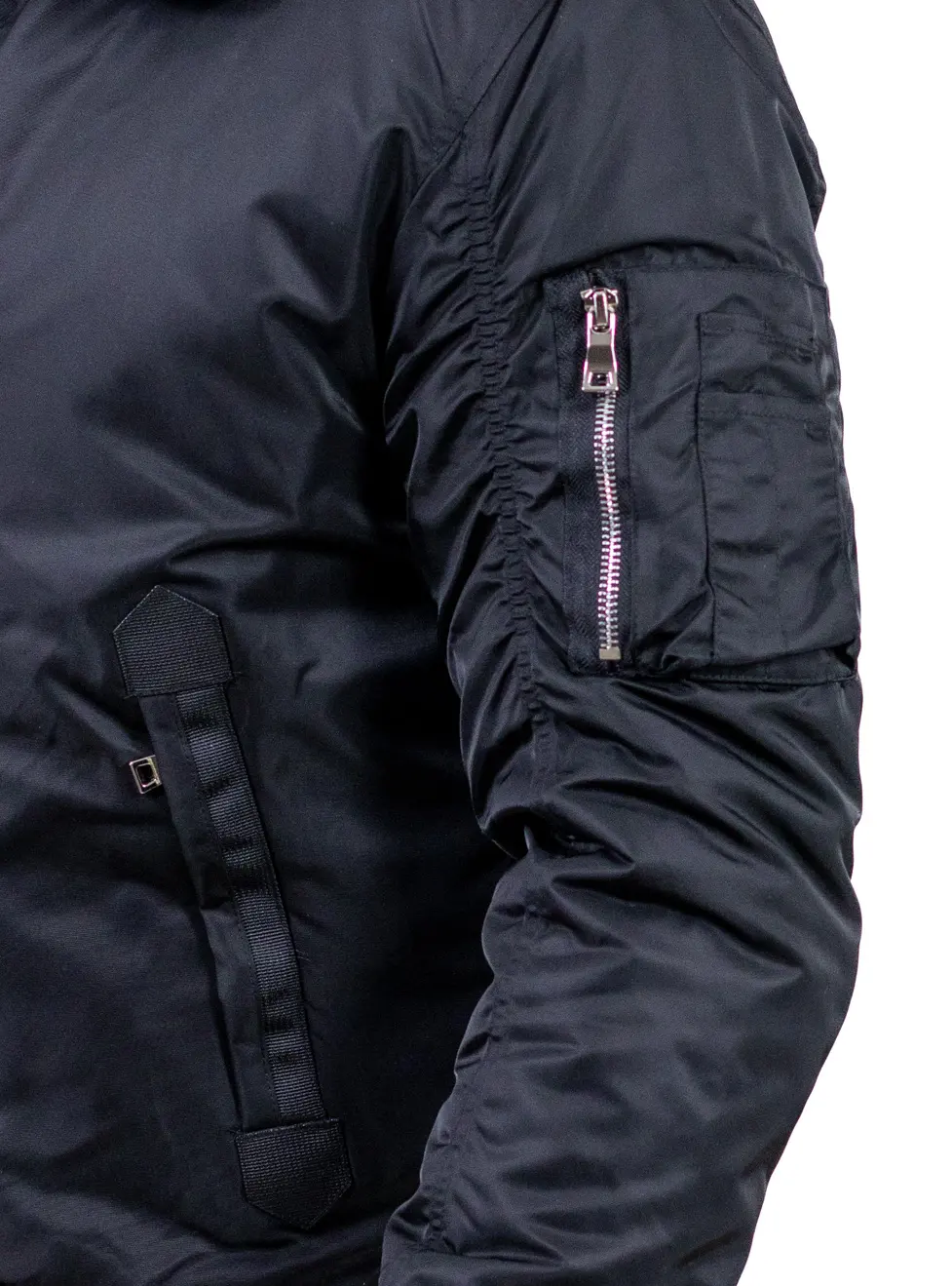 Designul este completat de buzunare laterale funcționale, buzunar cu fermoar pe mânecă și banda elastică la manșete și talie, care asigură o potrivire perfectă și protecție împotriva frigului.