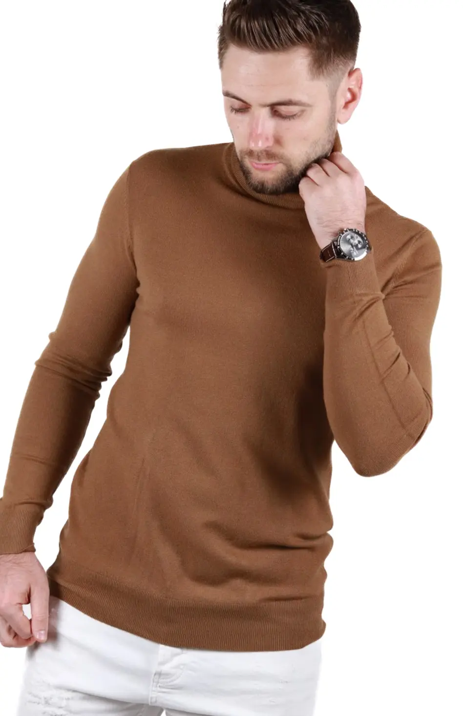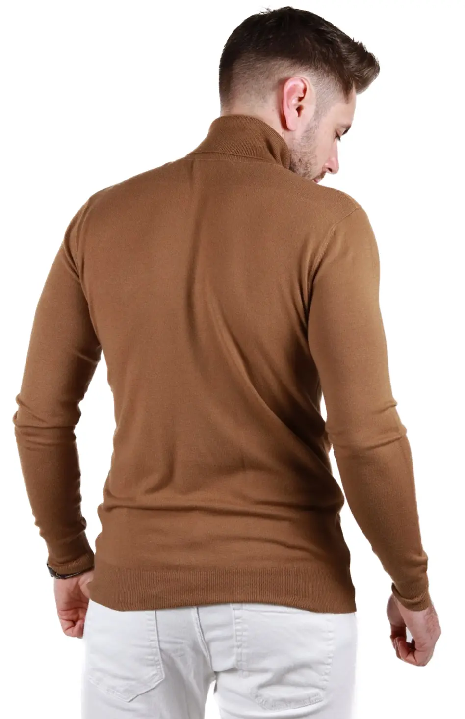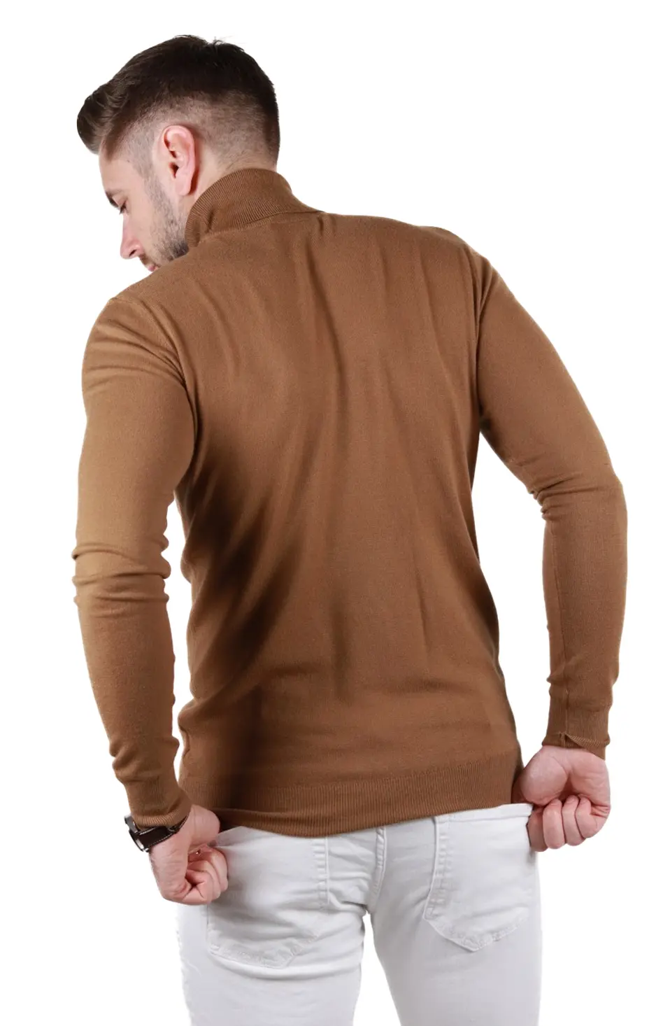 Pulover (maleta) cu croială slim fit. Guler intors, inalt . Culoare maro. Mânecă lungă. Material foarte fin la atingere, tip cașmir. Foarte confortabil datorita elasticitatii. Compozitie material: 50% vascoza 28% spandex 22% elastan.