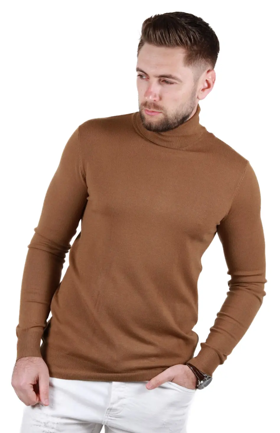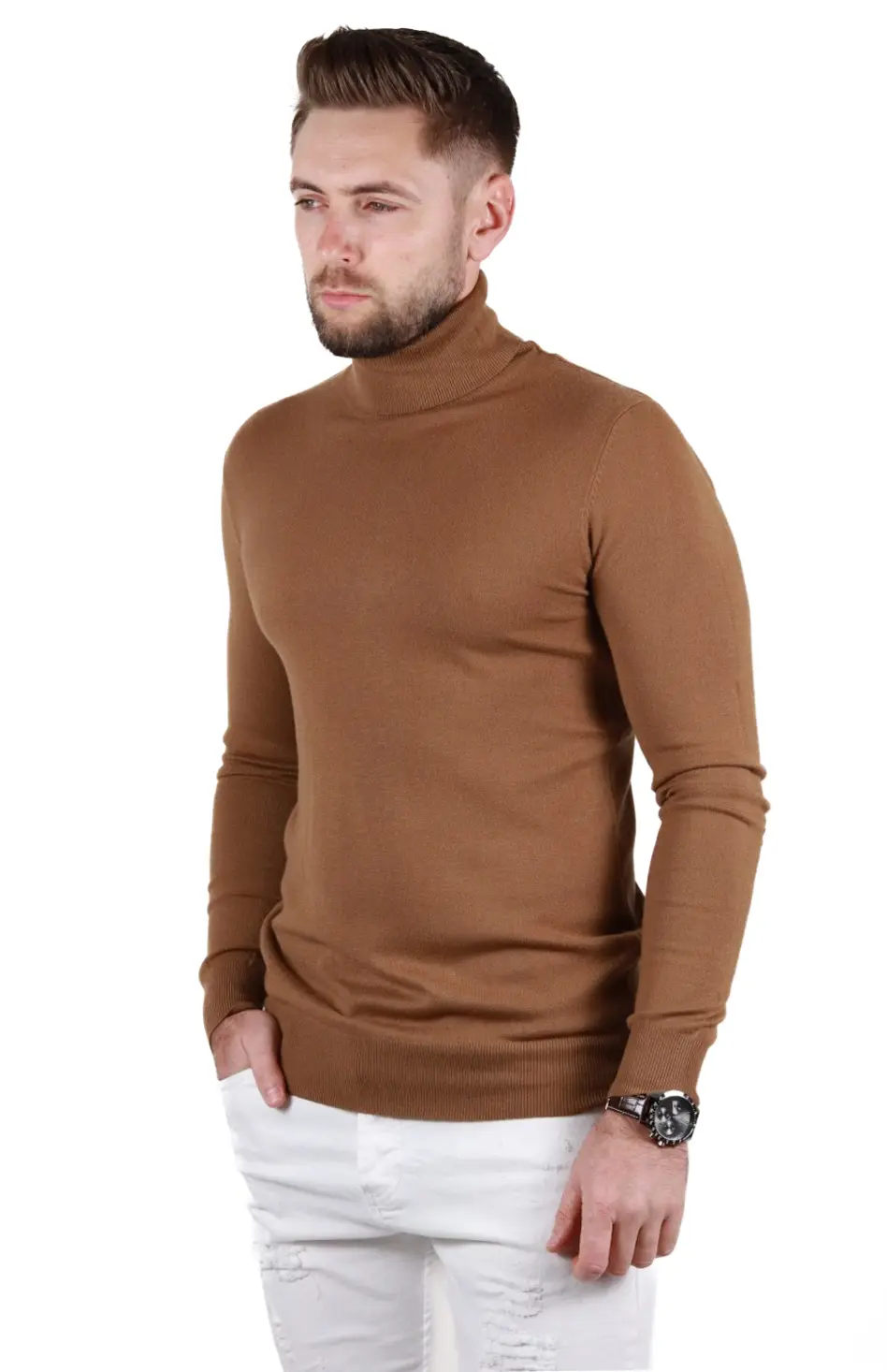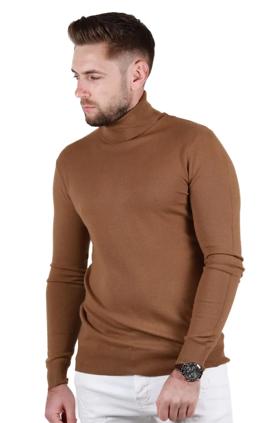 Pulover (maleta) cu croială slim fit. Guler intors, inalt . Culoare maro. Mânecă lungă. Material foarte fin la atingere, tip cașmir. Foarte confortabil datorita elasticitatii. Compozitie material: 50% vascoza 28% spandex 22% elastan.