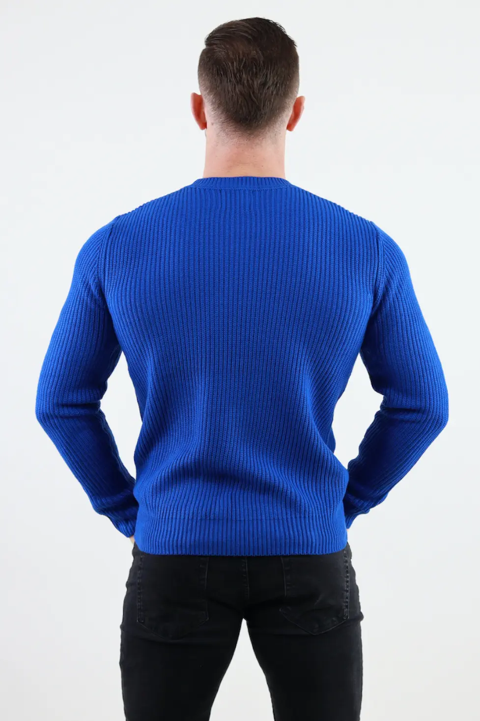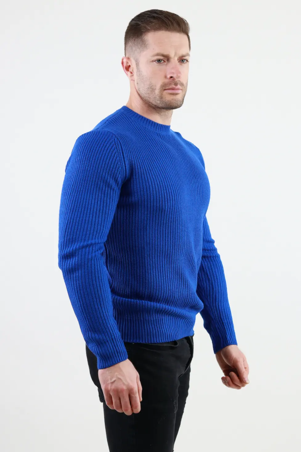 Pulover albastru gros din tricot cu guler rotund barbati