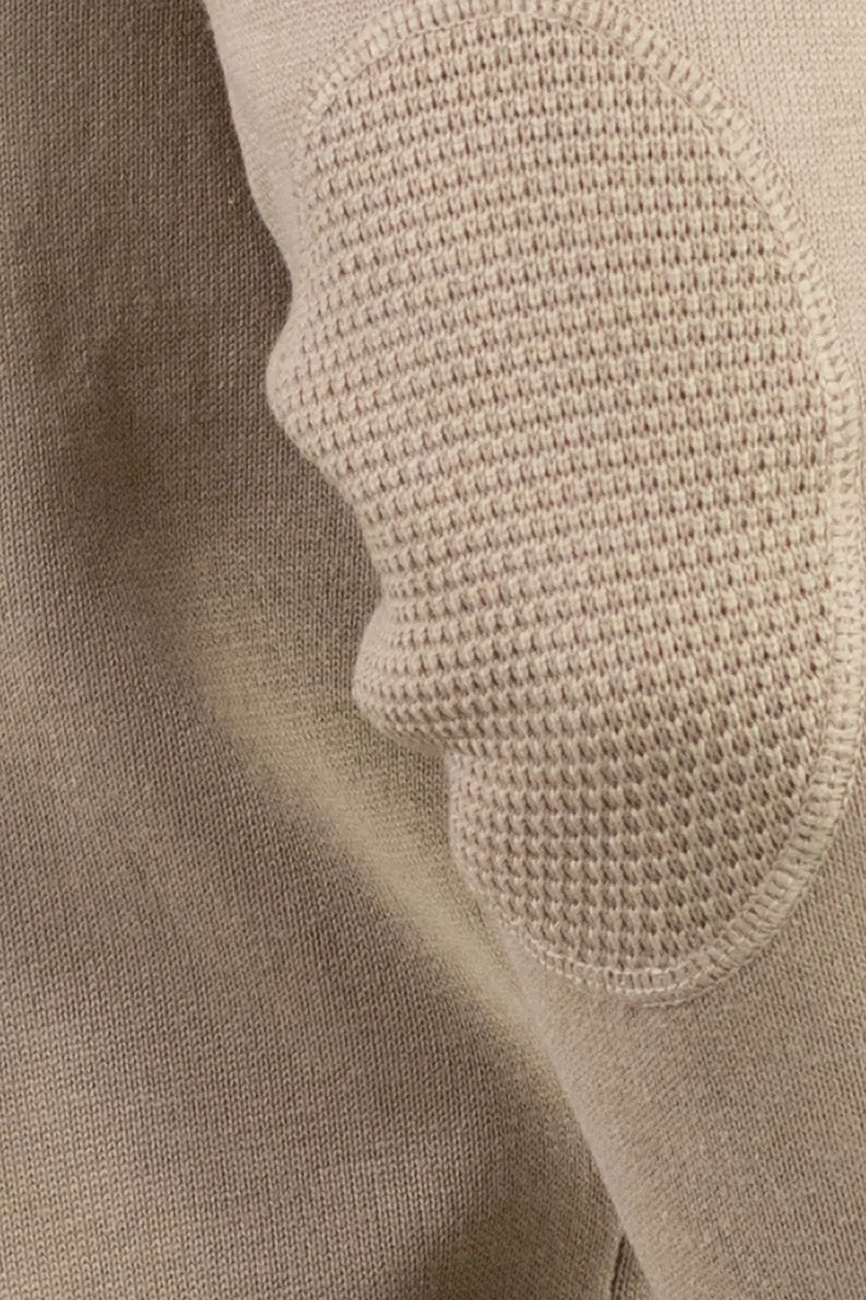 1. Cum să porți puloverul cu guler rotund și cotiere aplicate
