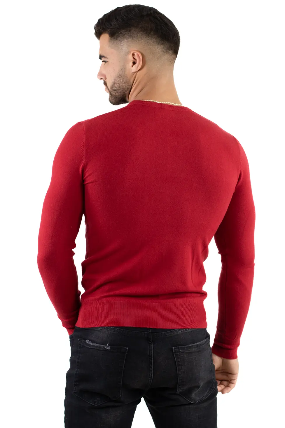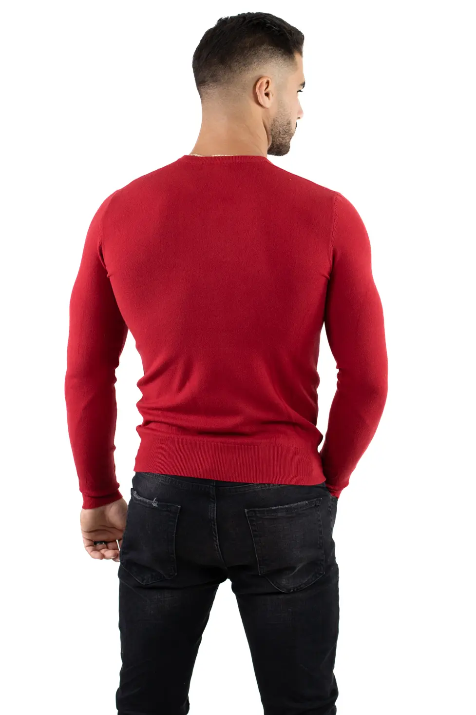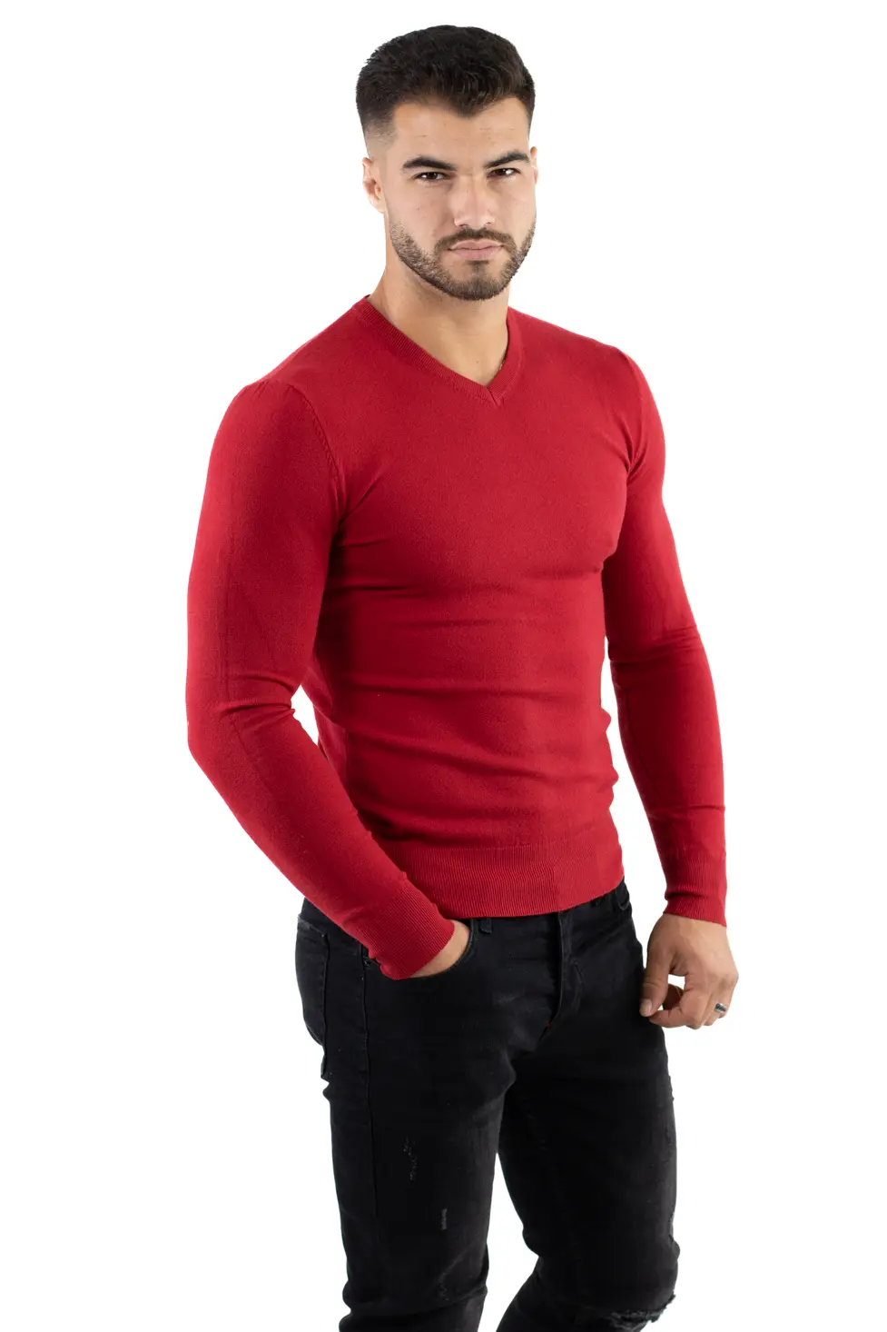 Pulover simplu cu croială slim fit. Guler in V. Culoare rosu. Mânecă lungă. Material foarte fin la atingere, tip cașmir. Foarte confortabil datorita elasticitatii.