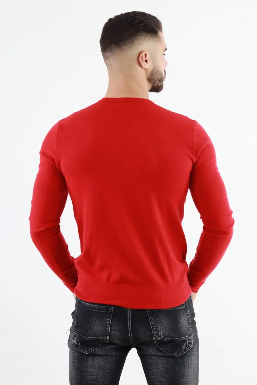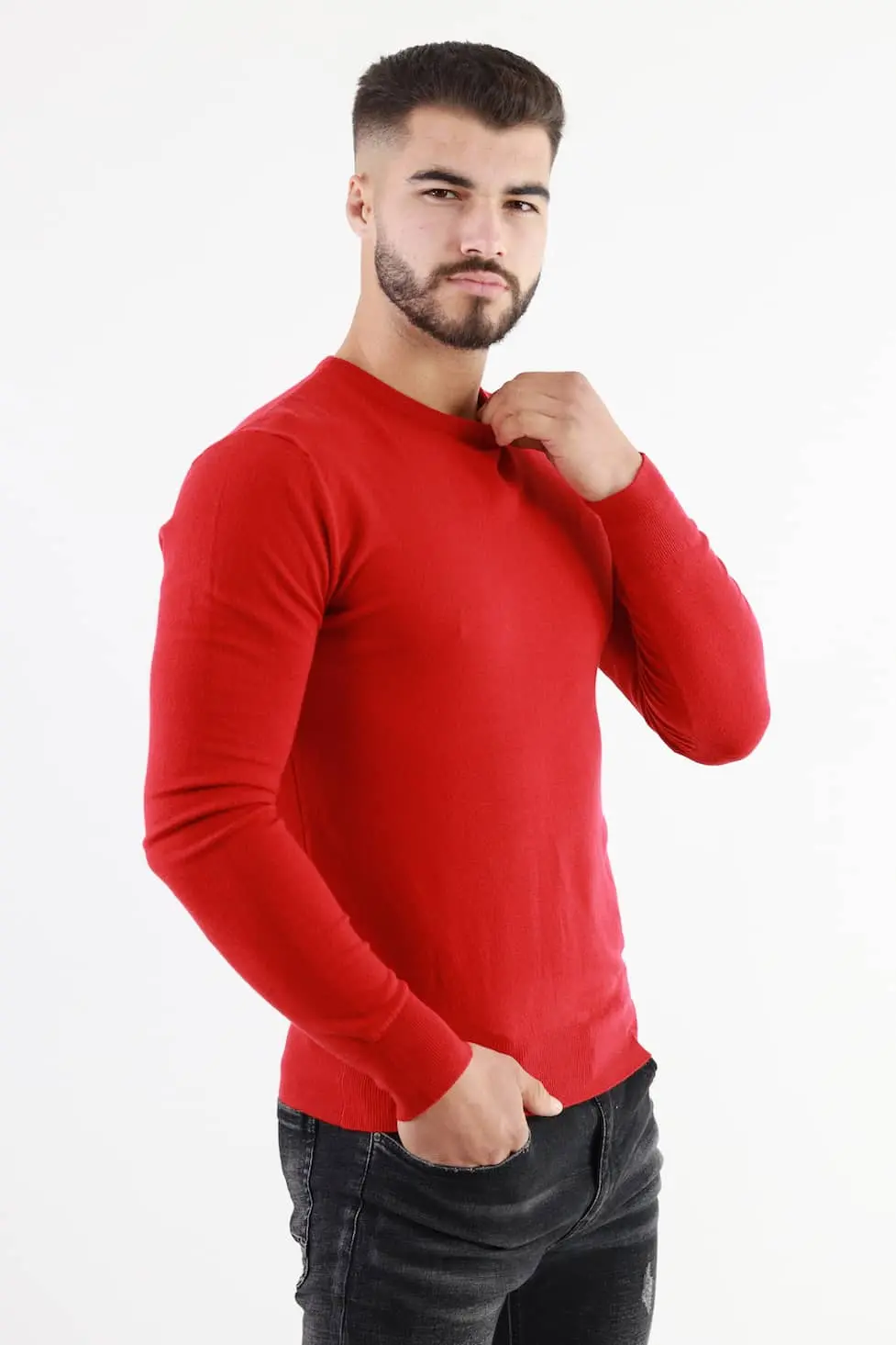 Pulover simplu cu croială slim fit. Guler rotund. Culoare rosu. Mânecă lungă. Material foarte fin la atingere, tip cașmir. Foarte confortabil datorita elasticitatii.