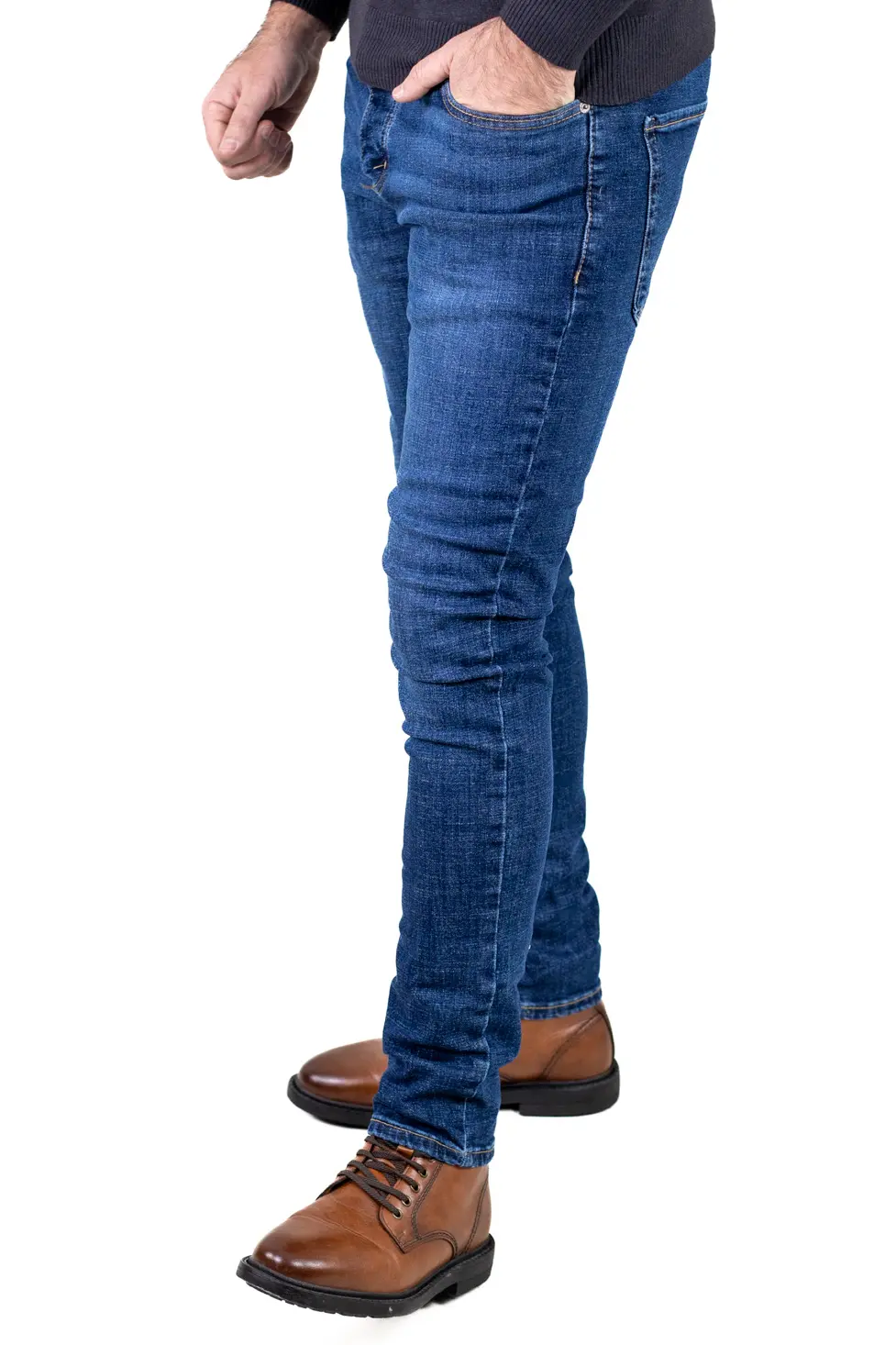 Blugi albastri pentru bărbați, cu croială regular fit și finisaj cu efect de spălat, potriviți pentru un stil curat și ușor de integrat în ținutele zilnice. Modelul este simplu, fără rupturi sau aplicații, fiind alegerea potrivită pentru cei care preferă un look discret și bine definit. Croiala urmărește natural linia piciorului și oferă libertate de mișcare pe tot parcursul zilei.