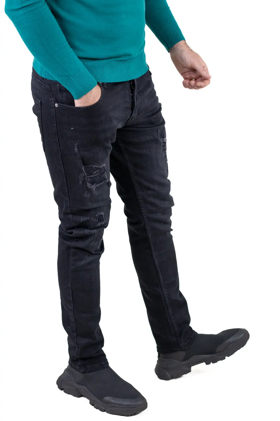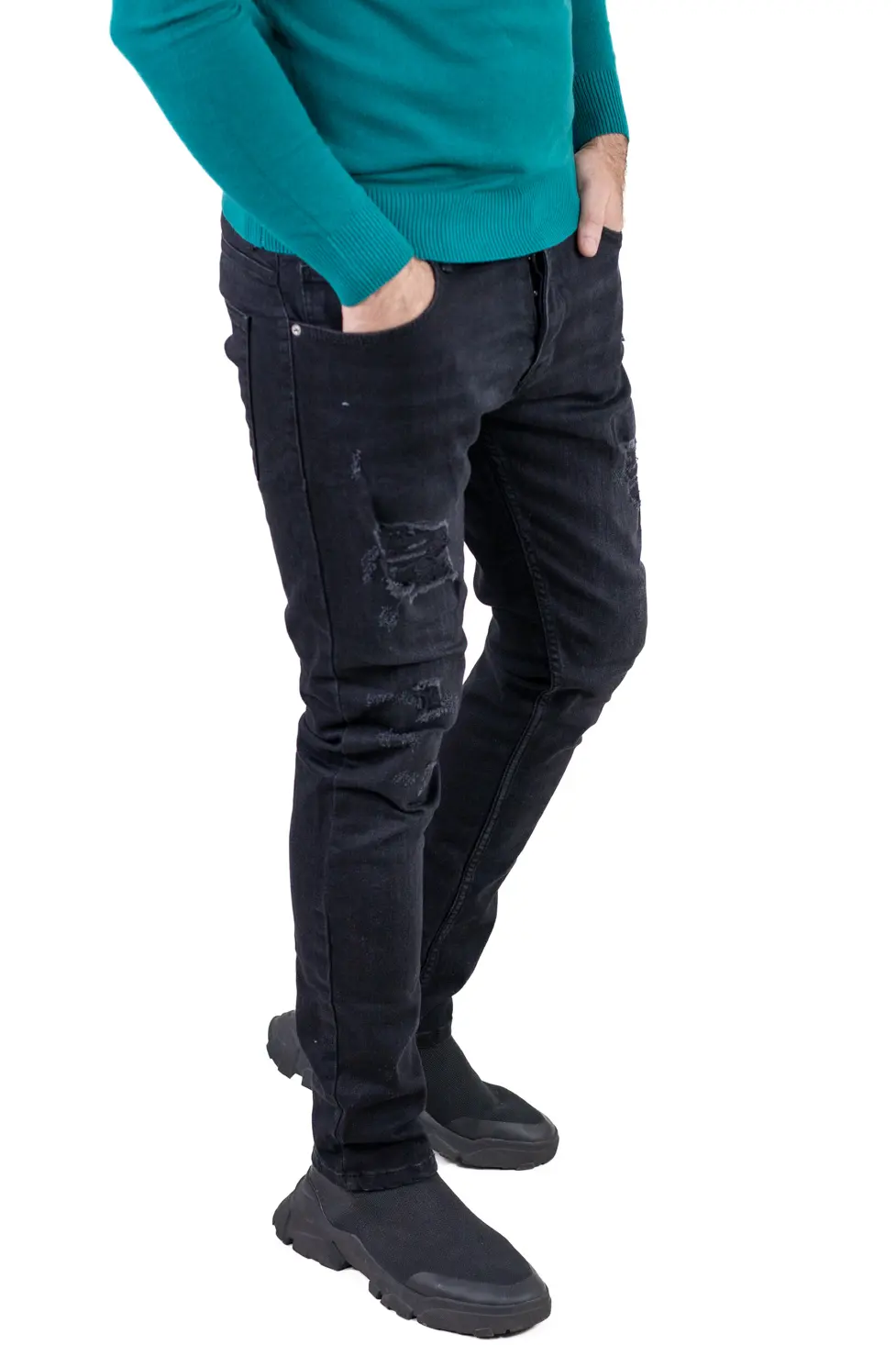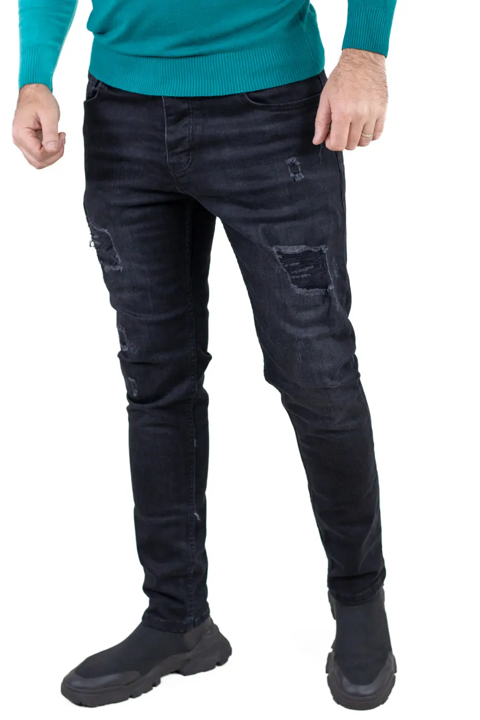 Blugi pentru bărbați cu croială regular fit, în nuanță negru prespălat, concepuți din material elastic pentru confort pe durata întregii zile. Modelul are rupturi decorative acoperite pe interior, astfel încât pielea nu se vede, păstrând un aspect modern, dar purtabil în orice context casual.