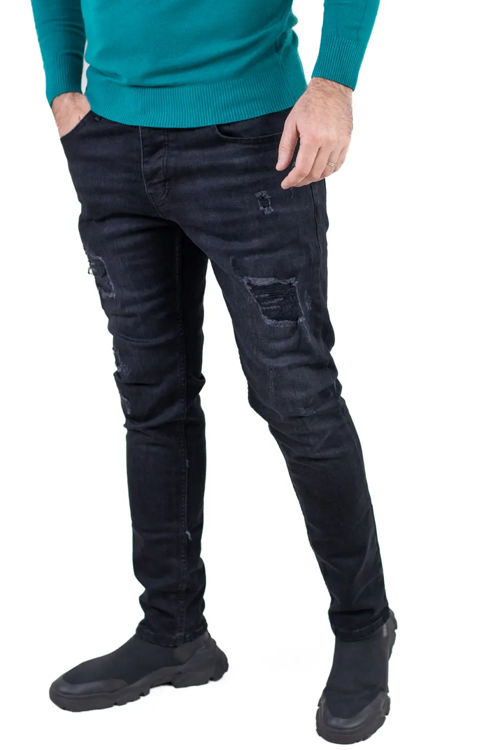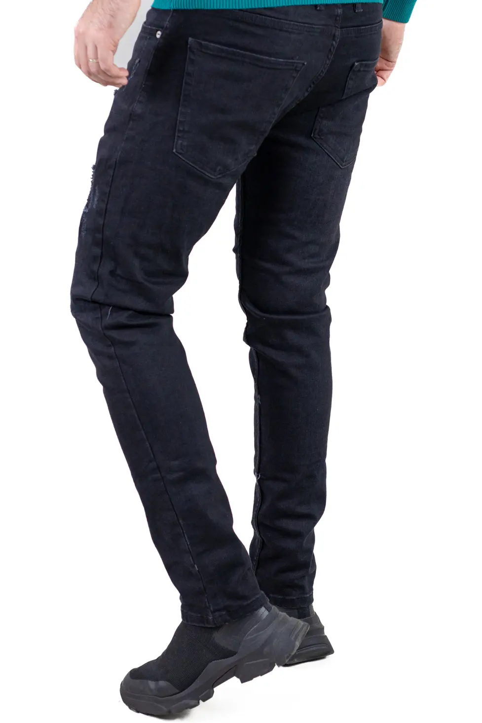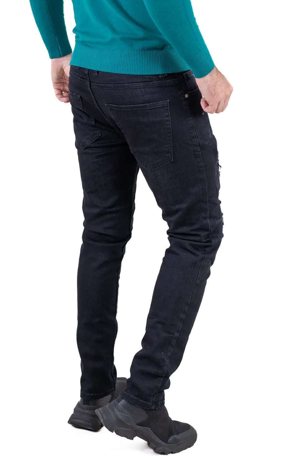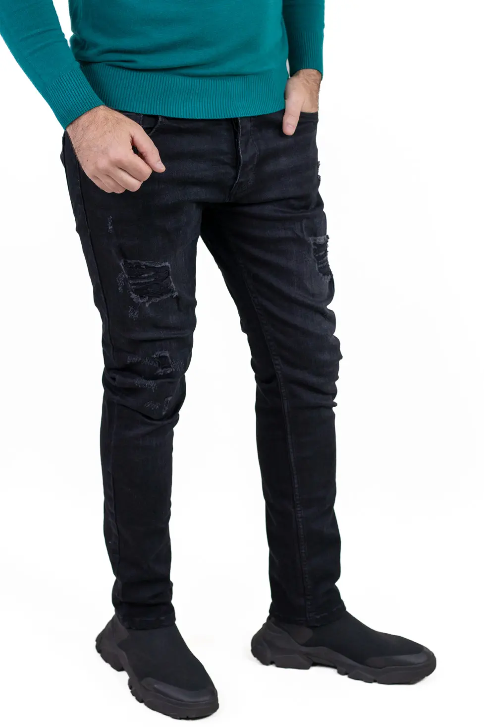 Blugi pentru bărbați cu croială regular fit, în nuanță negru prespălat, concepuți din material elastic pentru confort pe durata întregii zile. Modelul are rupturi decorative acoperite pe interior, astfel încât pielea nu se vede, păstrând un aspect modern, dar purtabil în orice context casual.