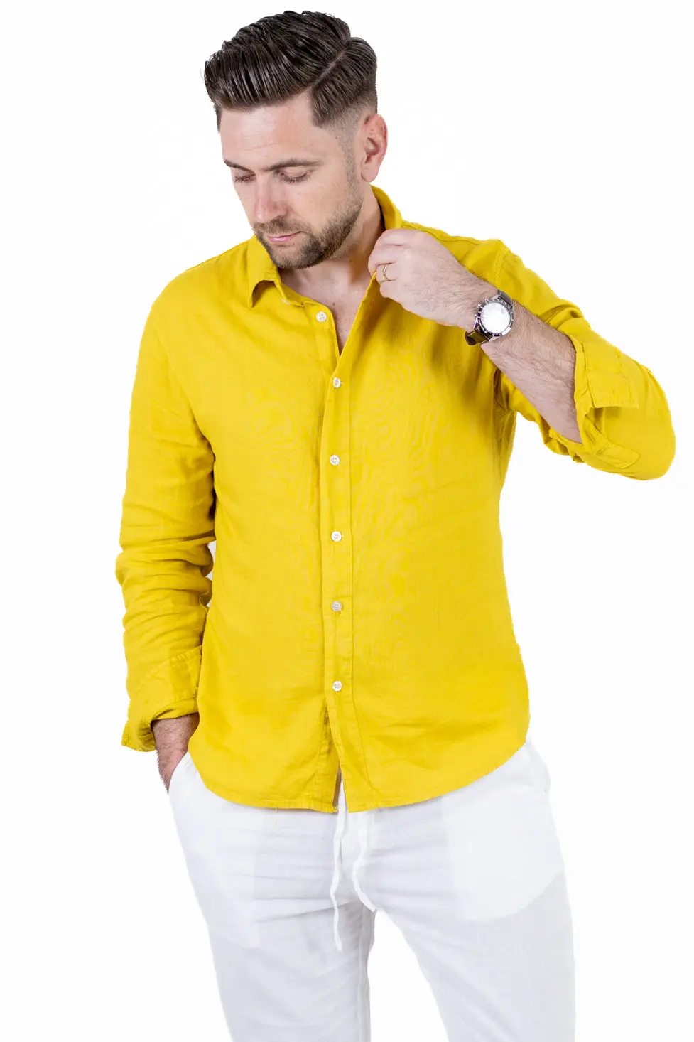 Această cămașă galben mustar pentru bărbați, realizată din 100% in natural, este alegerea ideală pentru zilele calde în care stilul și confortul merg mână în mână. Fabricată în Italia, cu o croială lejeră și guler normal, piesa oferă o notă rafinată oricărei ținute casual.