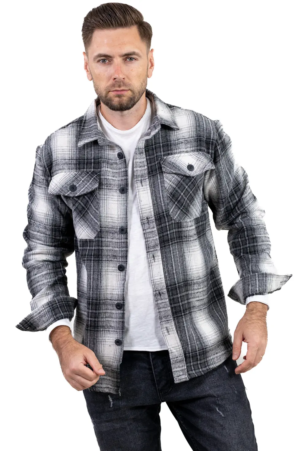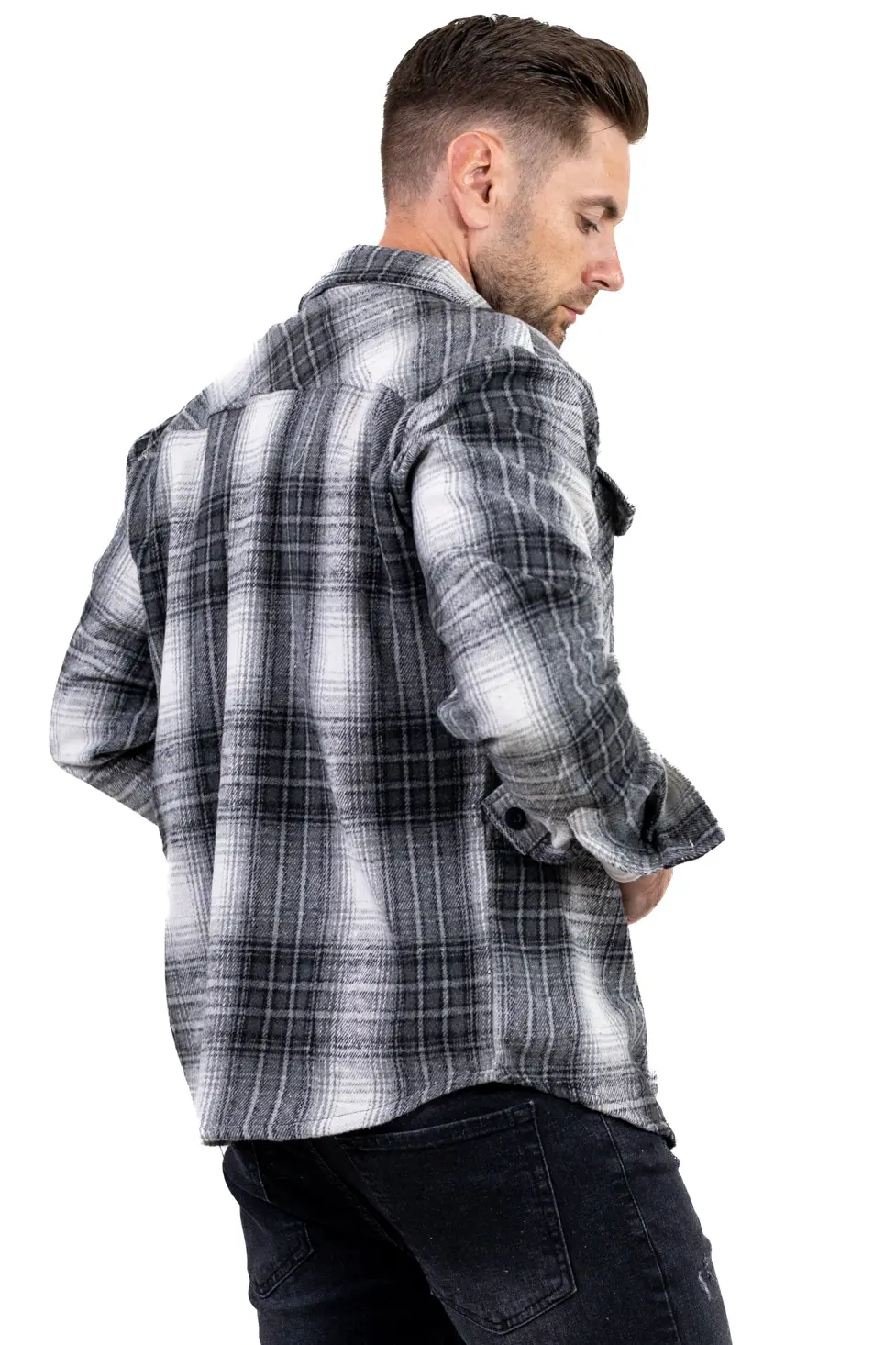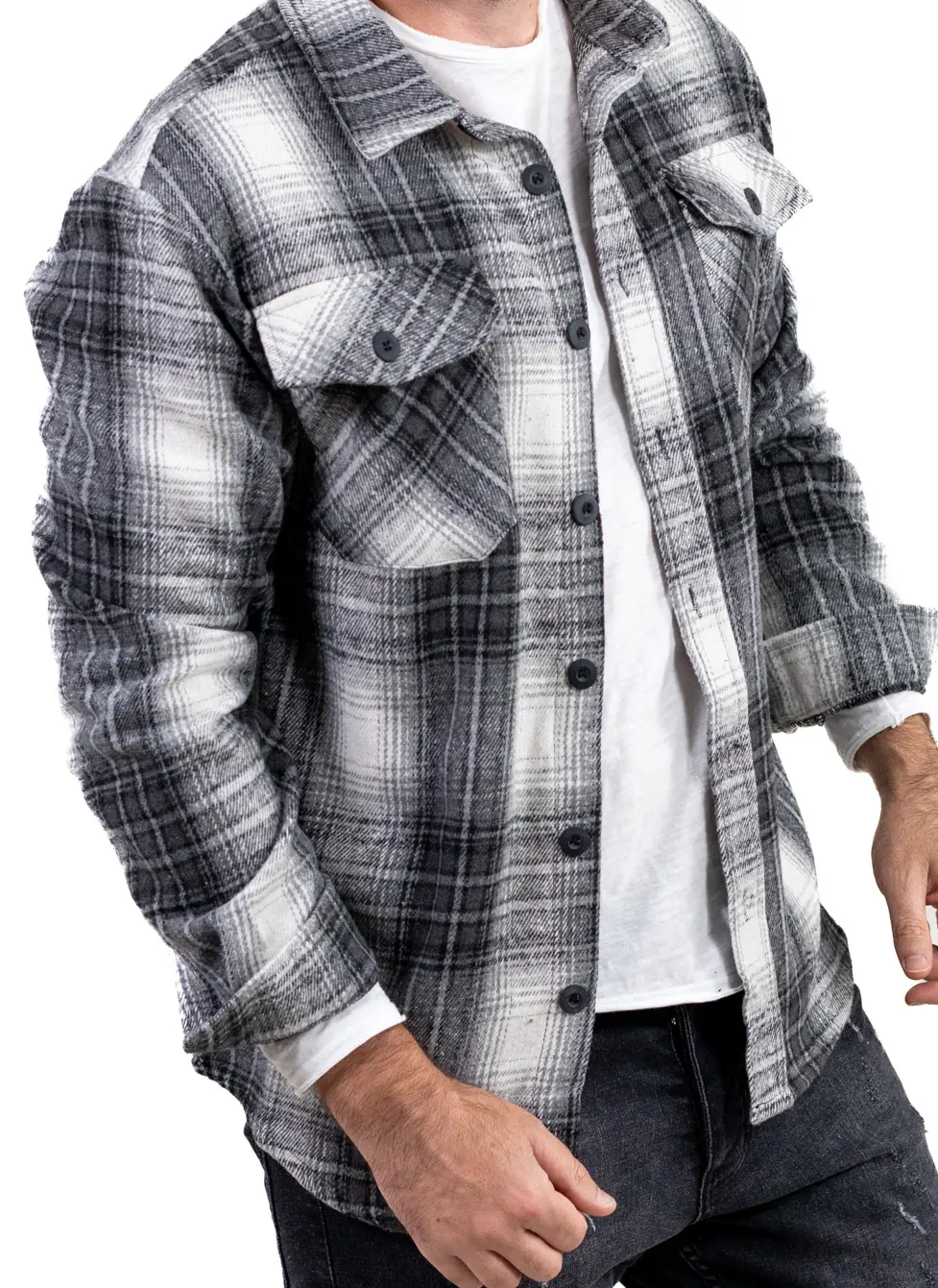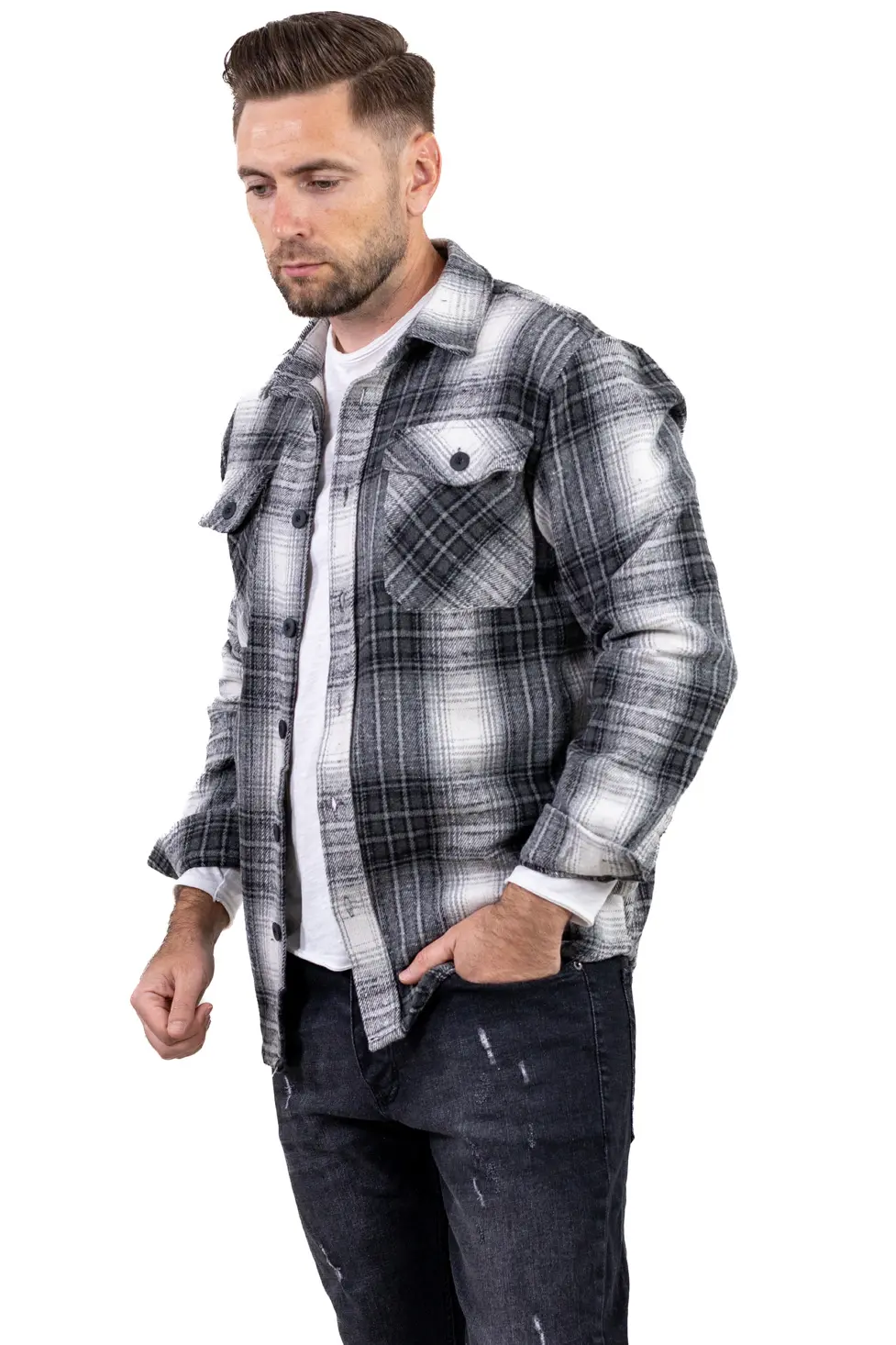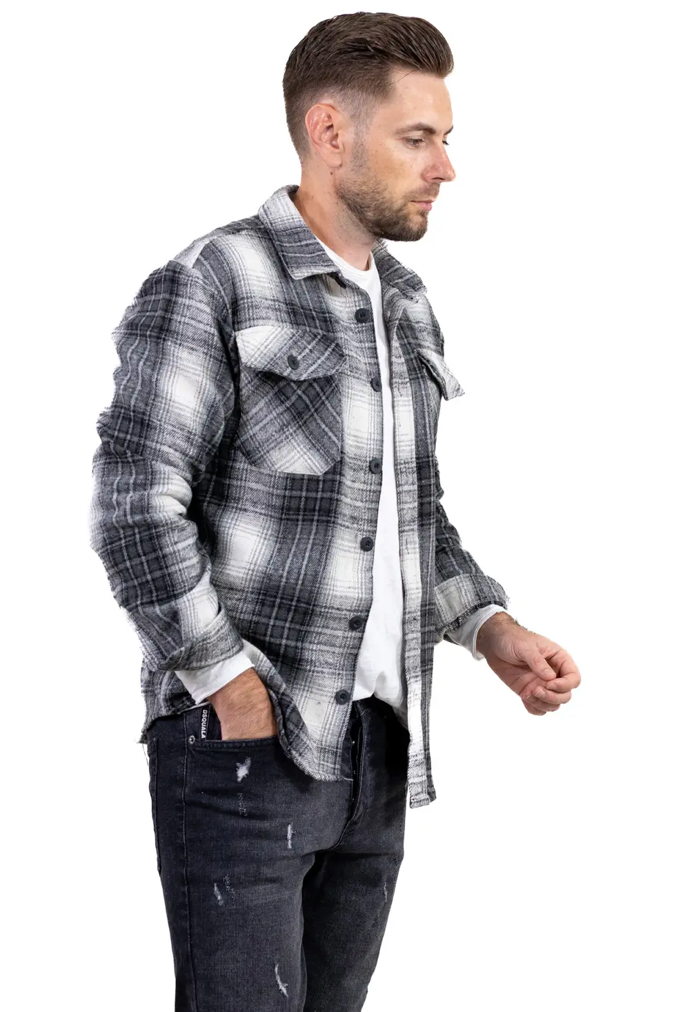 Cămașă groasă in carouri gri cu negru, tip jacheta