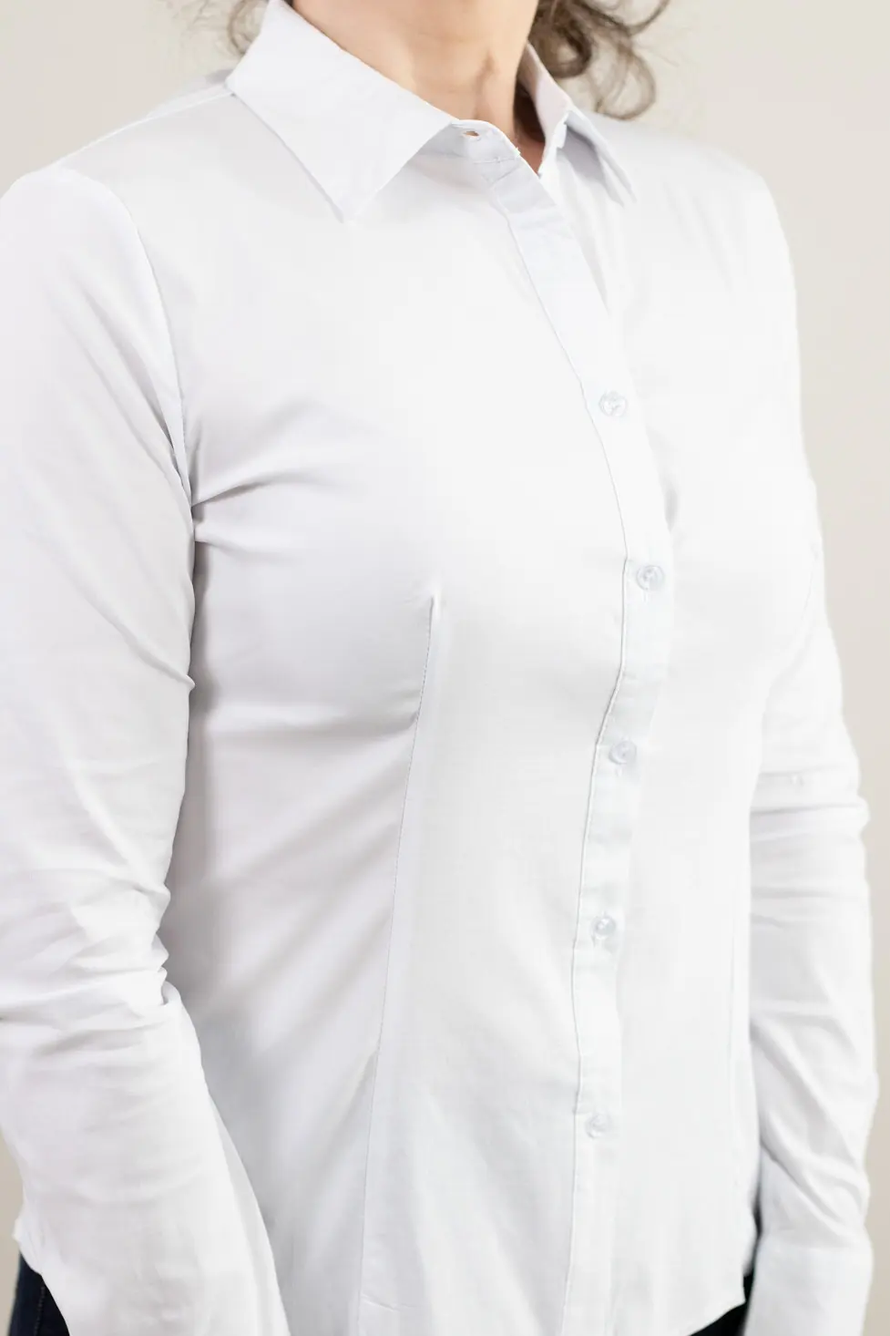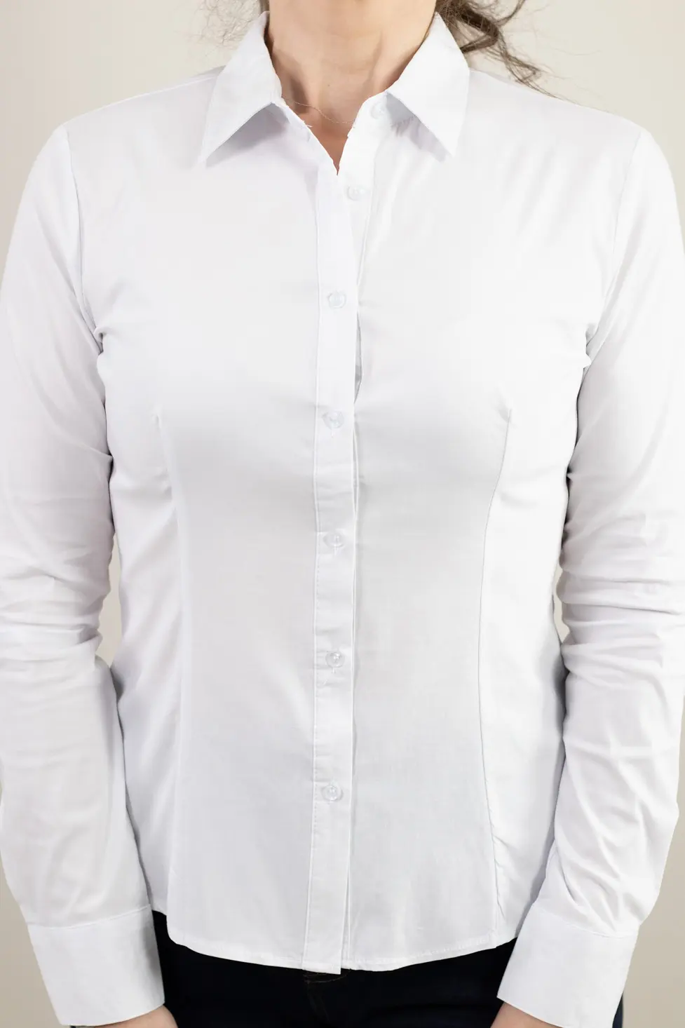 Această cămașă albă pentru femei este piesa de bază a oricărei garderobe elegante. Realizată dintr-un material fin, elastic și plăcut la atingere, oferă libertate de mișcare și un confort excelent pe tot parcursul zilei.