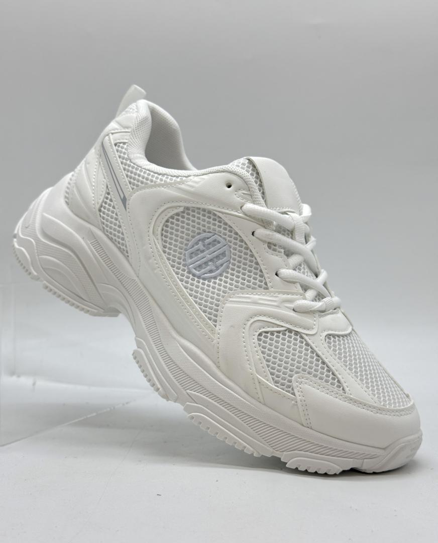 Sneakersii sunt confecționați din material textil tip mesh, combinat cu material sintetic pentru susținere și rezistență.