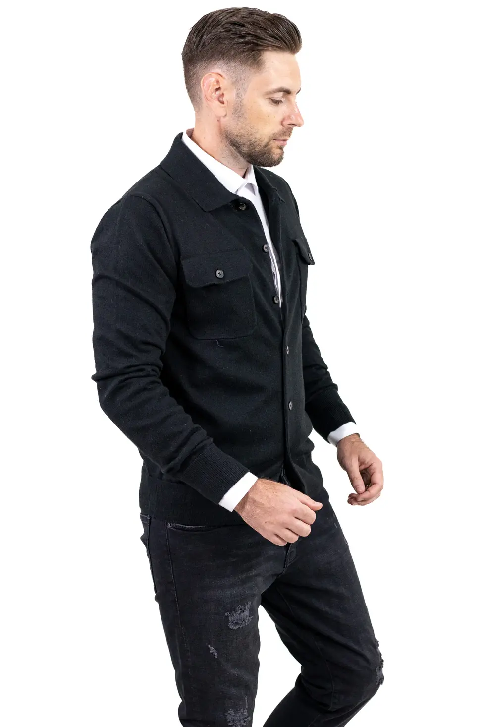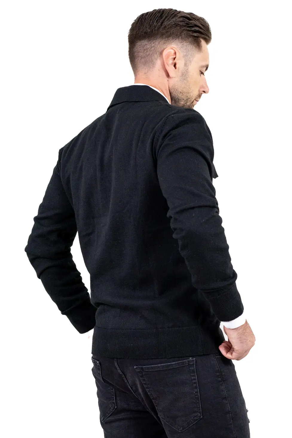 Acest cardigan negru este alegerea ideală pentru bărbatul modern care apreciază eleganța lejeră și confortul de zi cu zi. Realizat dintr-un mix de vâscoză, lână și poliamidă, materialul este moale, plăcut la atingere și oferă un plus de căldură în zilele mai răcoroase.