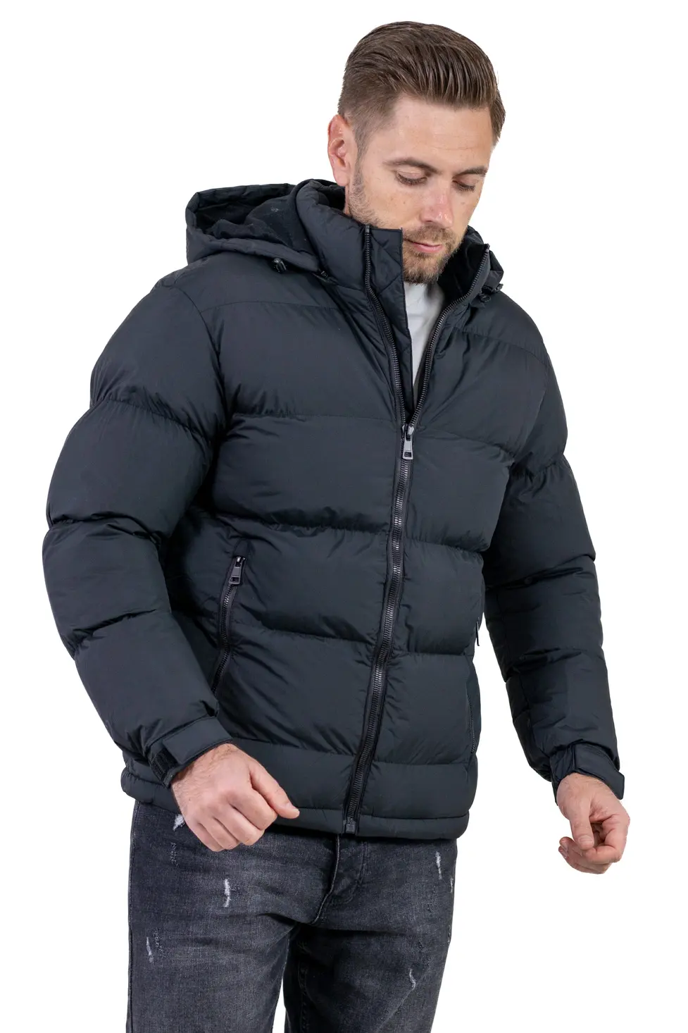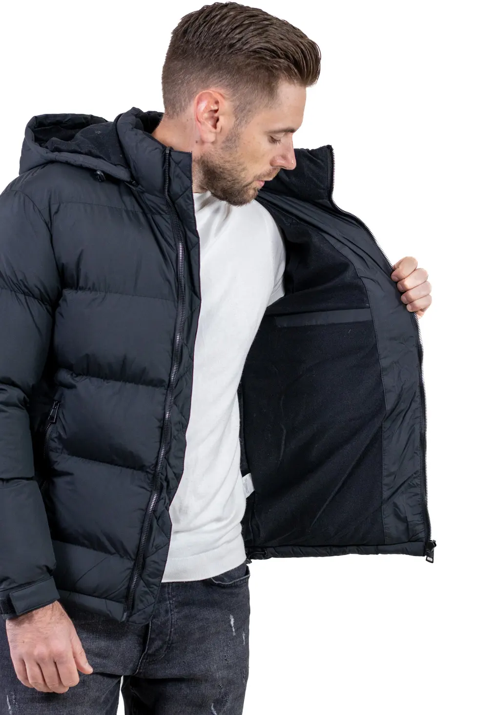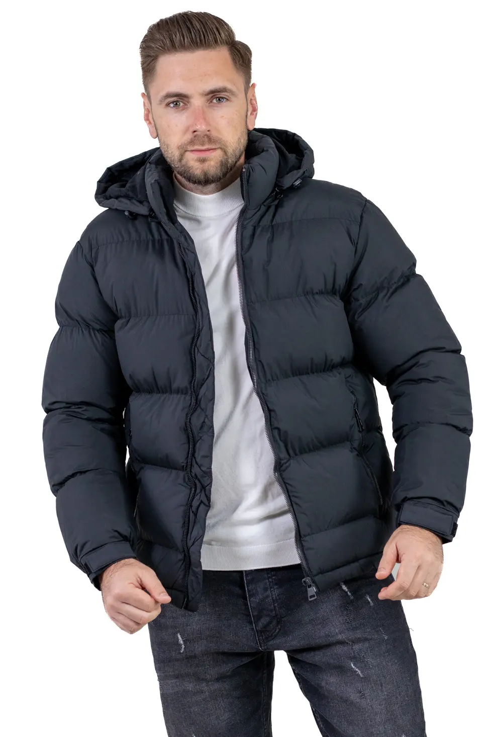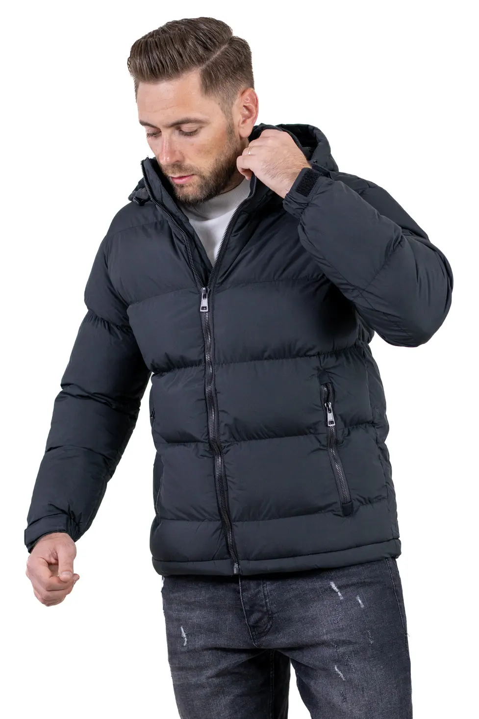Geacă groasă de iarnă pentru bărbați cu glugă detașabilă - neagră