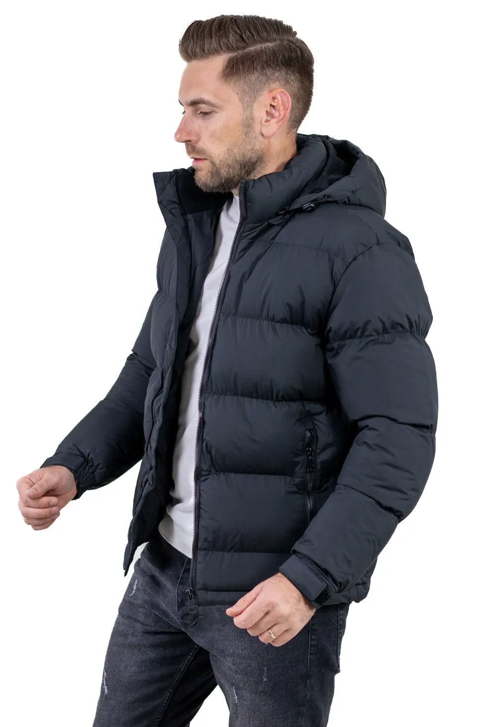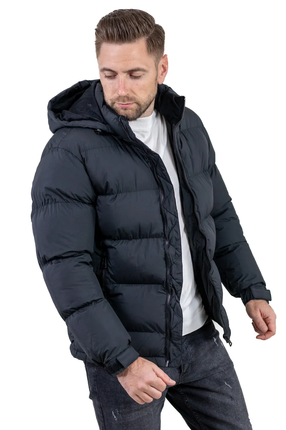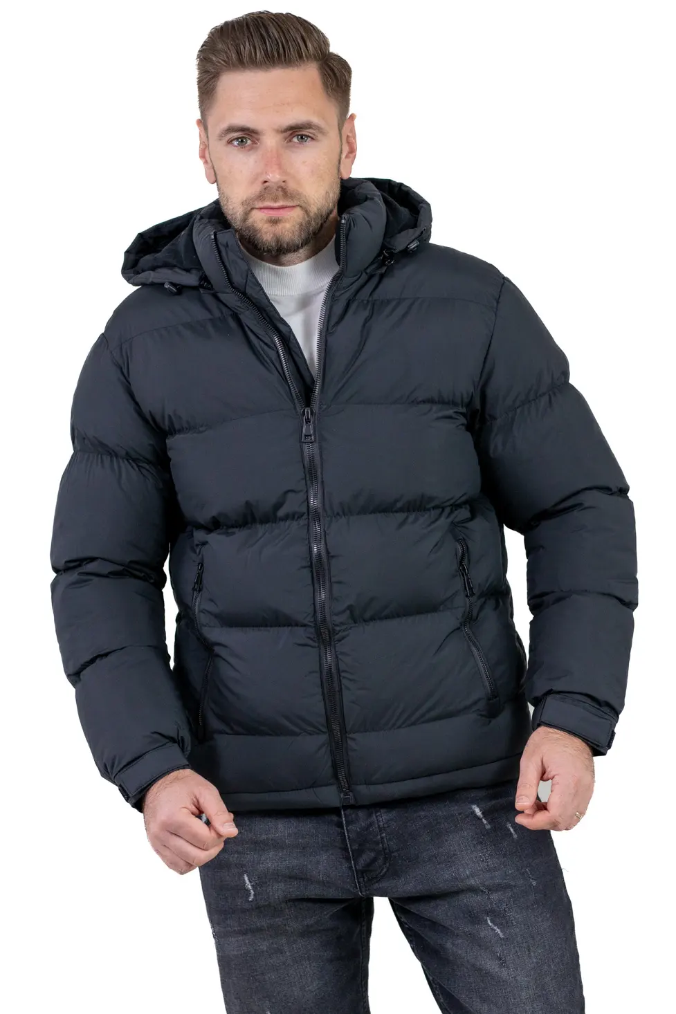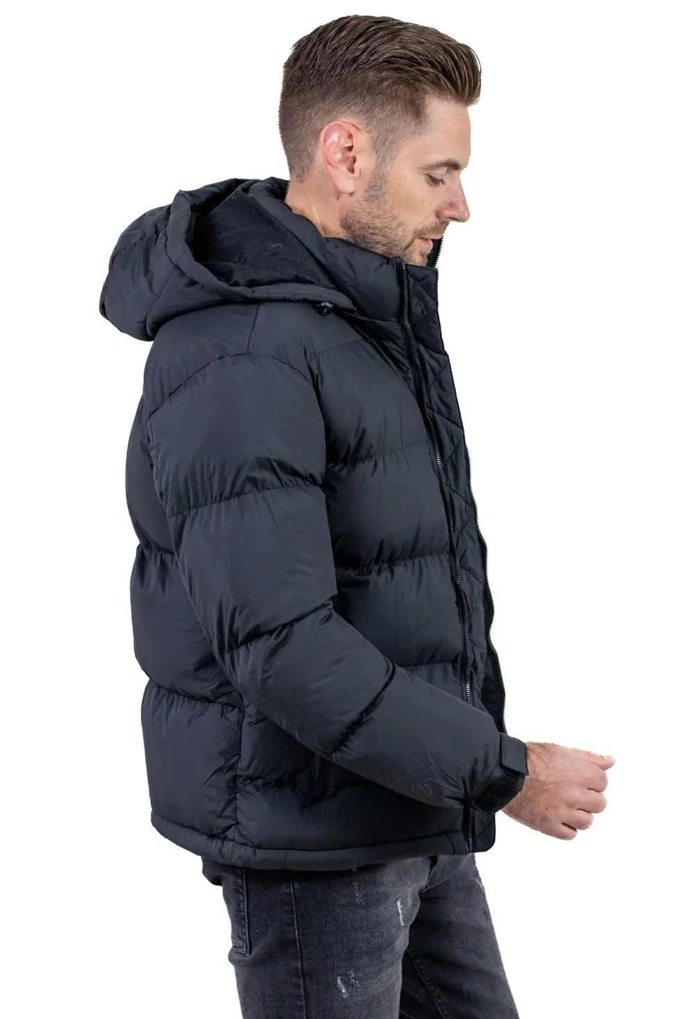 Geacă groasă de iarnă pentru bărbați cu glugă detașabilă - neagră