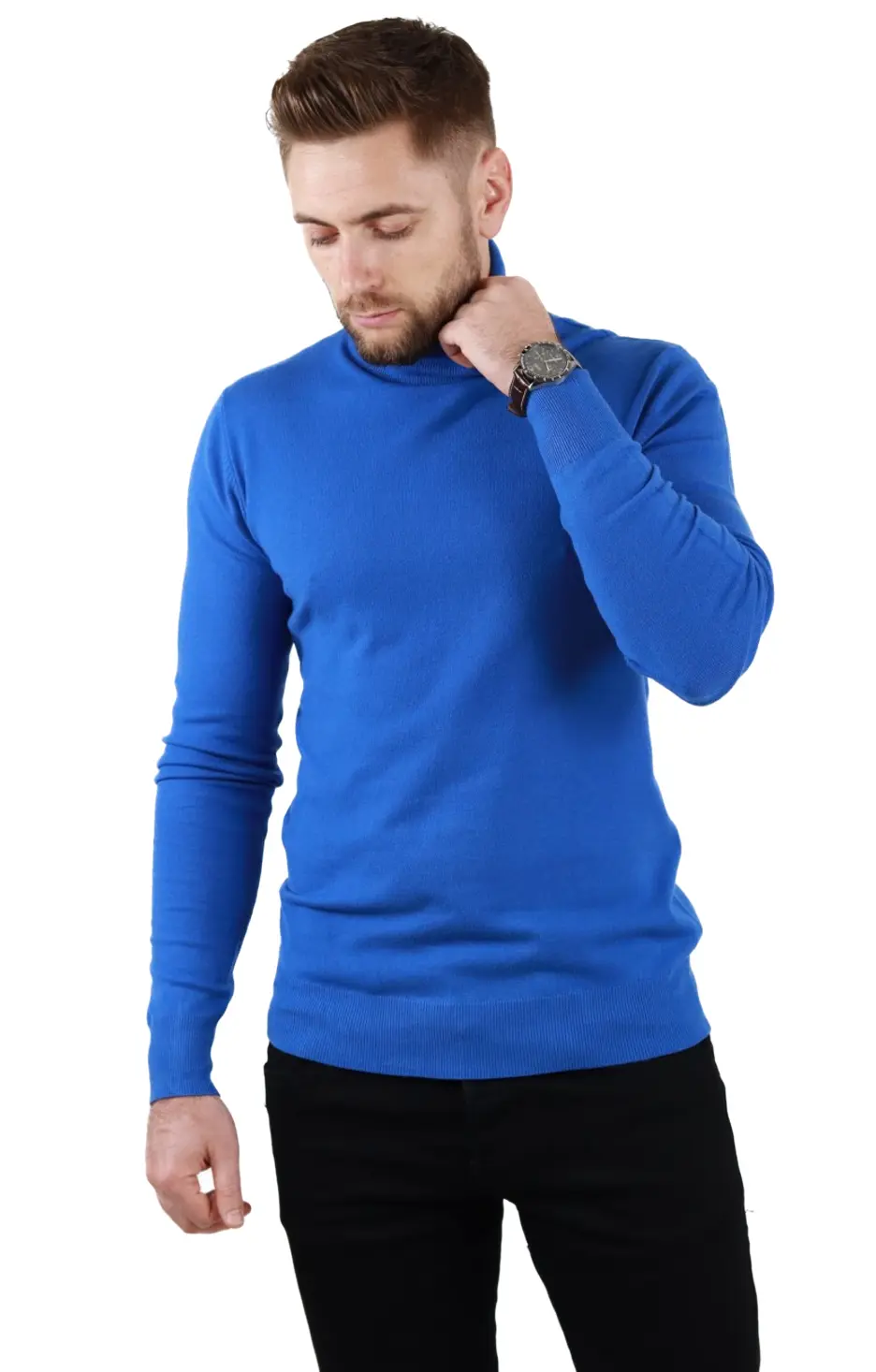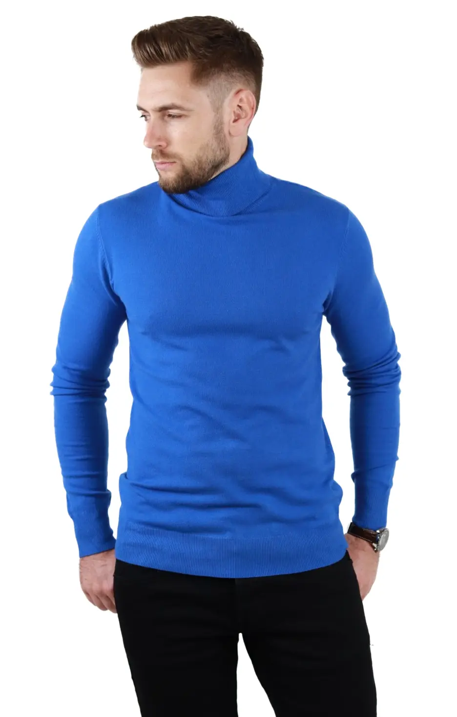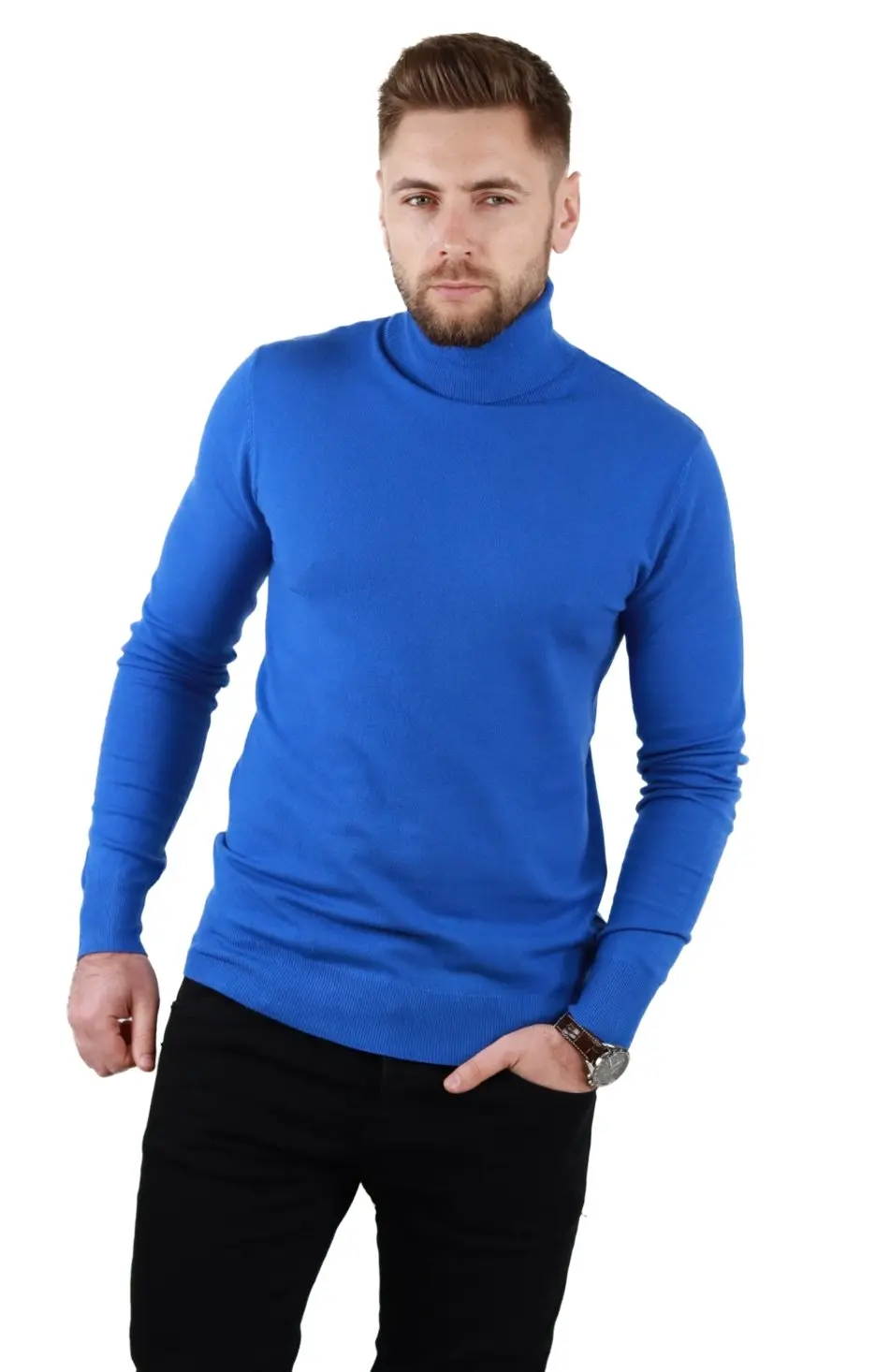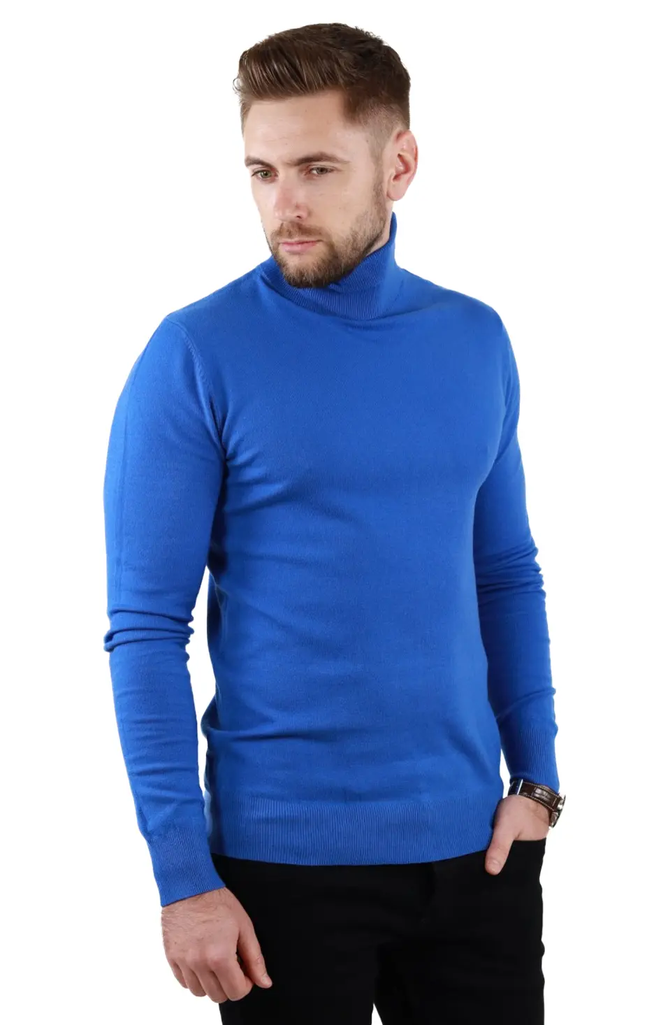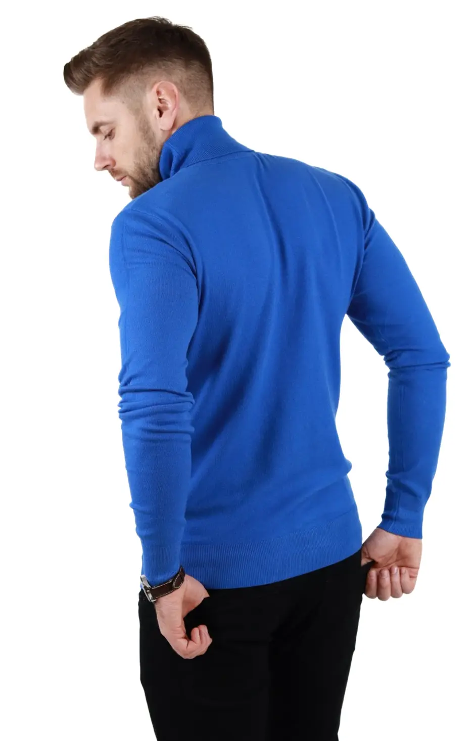 Pulover (maleta) cu croială slim fit. Guler intors, inalt . Culoare albastru. Mânecă lungă. Material foarte fin la atingere, tip cașmir. Foarte confortabil datorita elasticitatii. Compozitie material: 50% vascoza 28% spandex 22% elastan
