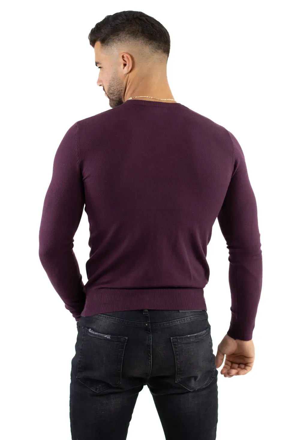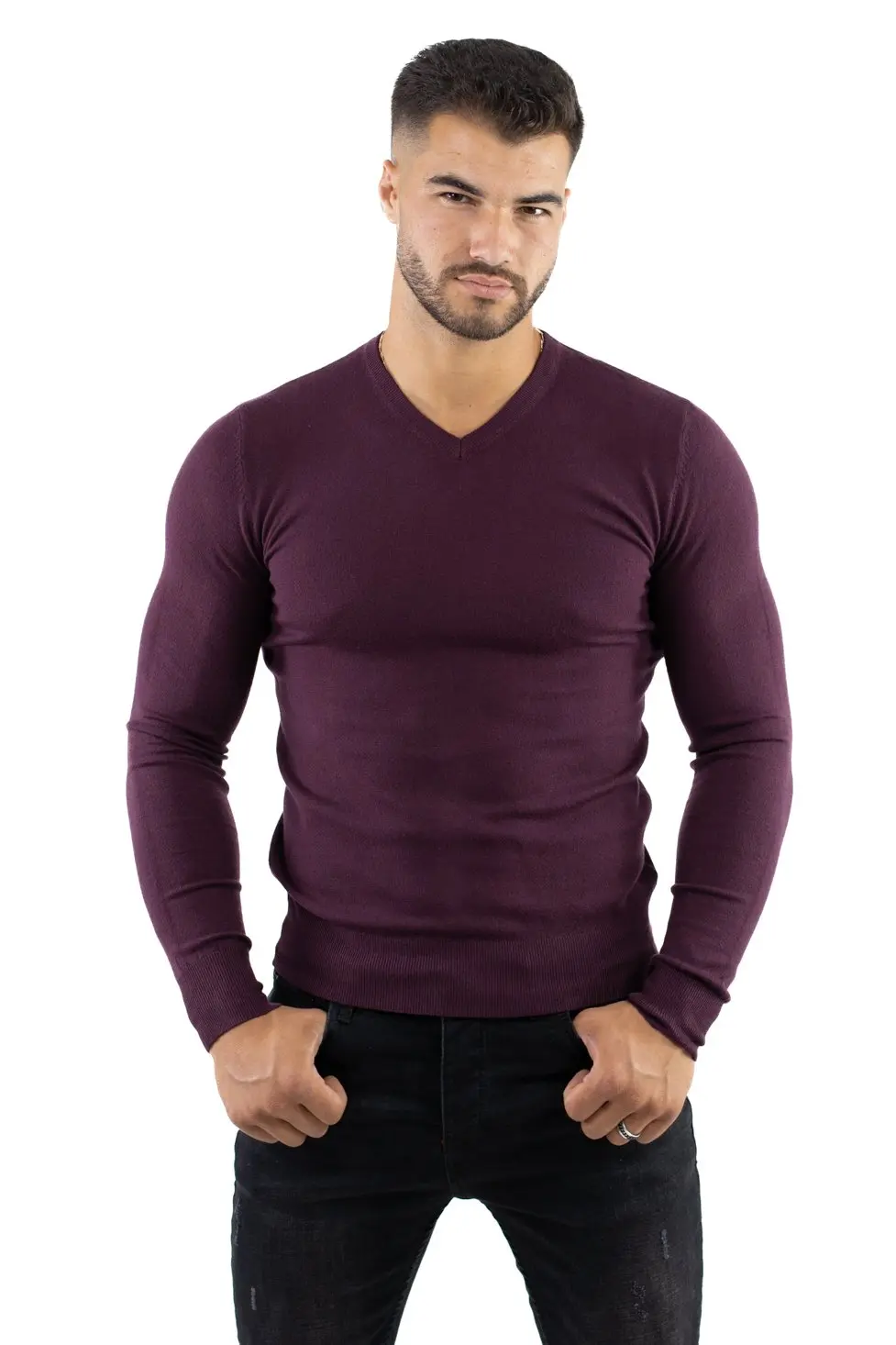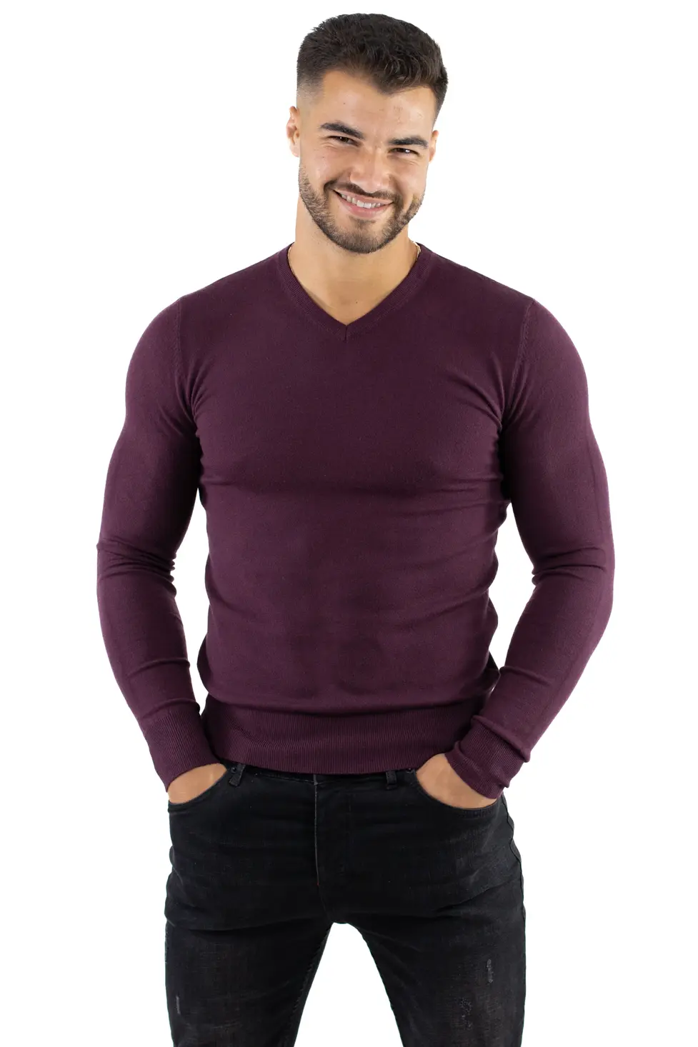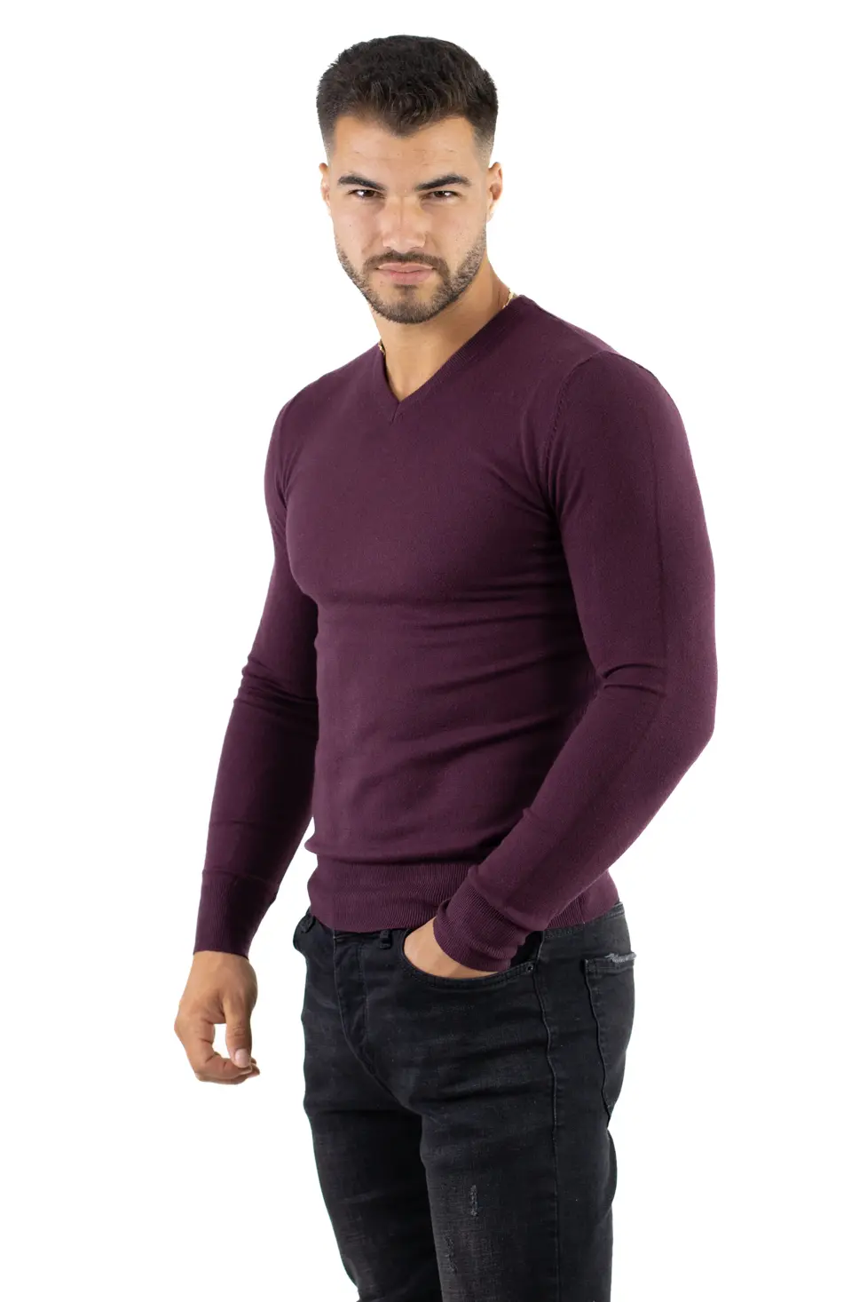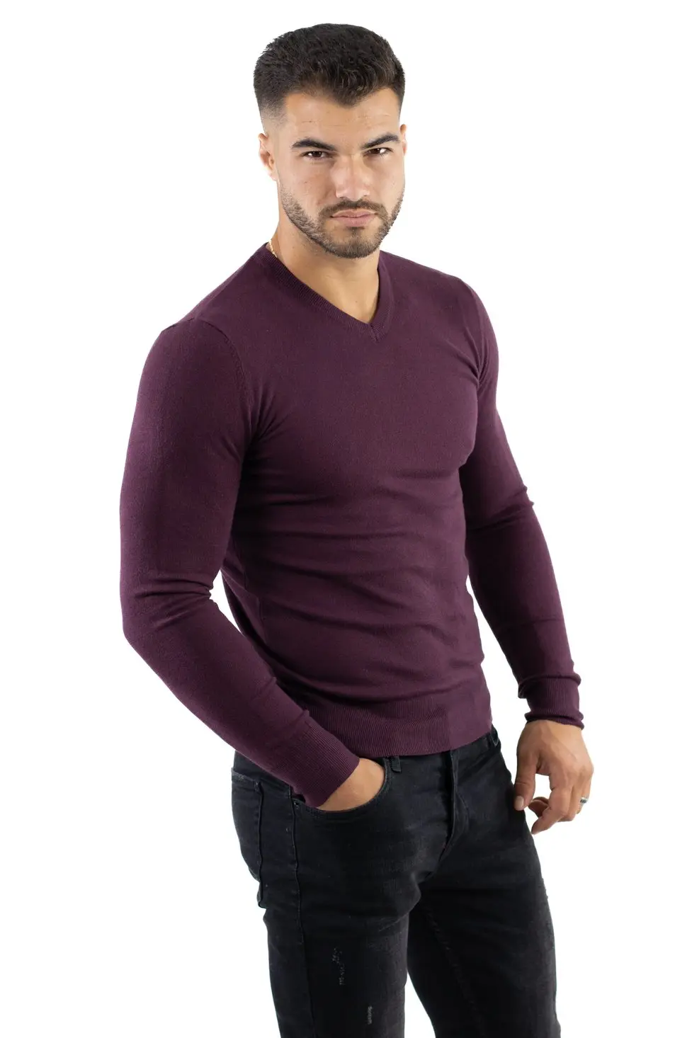 Pulover simplu cu croială slim fit. Guler in V. Culoare visina putreda. Mânecă lungă. Material foarte fin la atingere, tip cașmir. Foarte confortabil datorita elasticitatii.