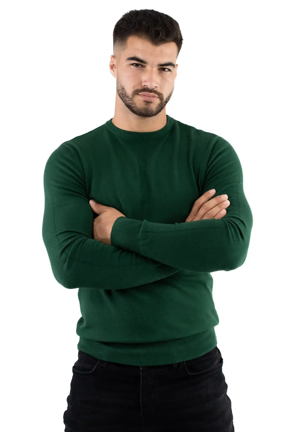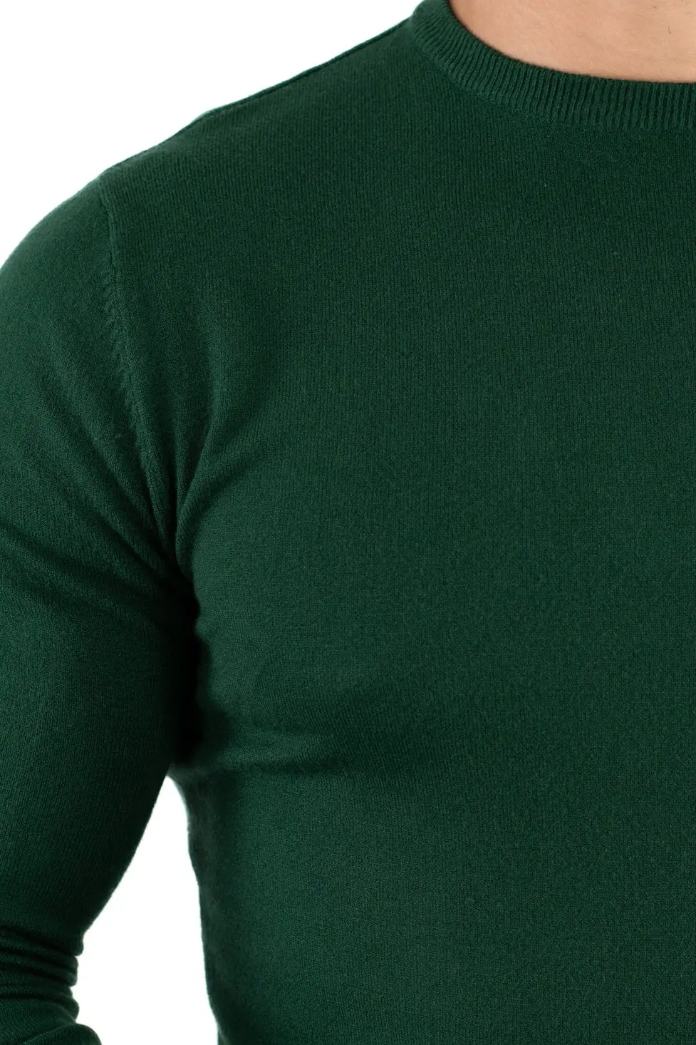 Pulover simplu cu croială slim fit. Guler rotund. Culoare verde. Mânecă lungă. Material foarte fin la atingere, tip cașmir. Foarte confortabil datorita elasticitatii.