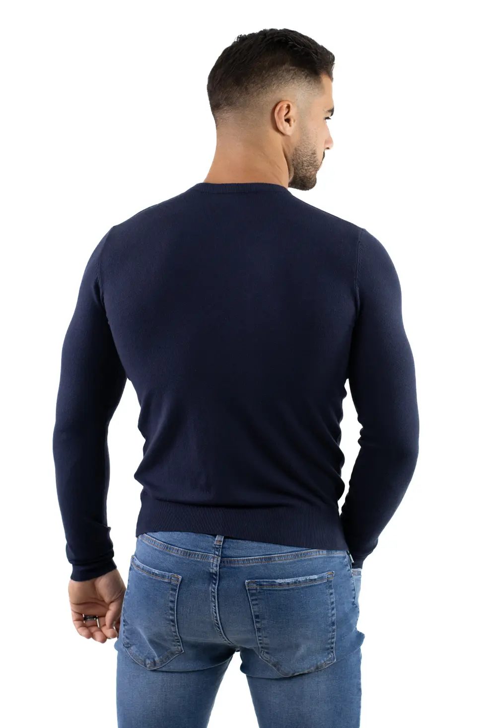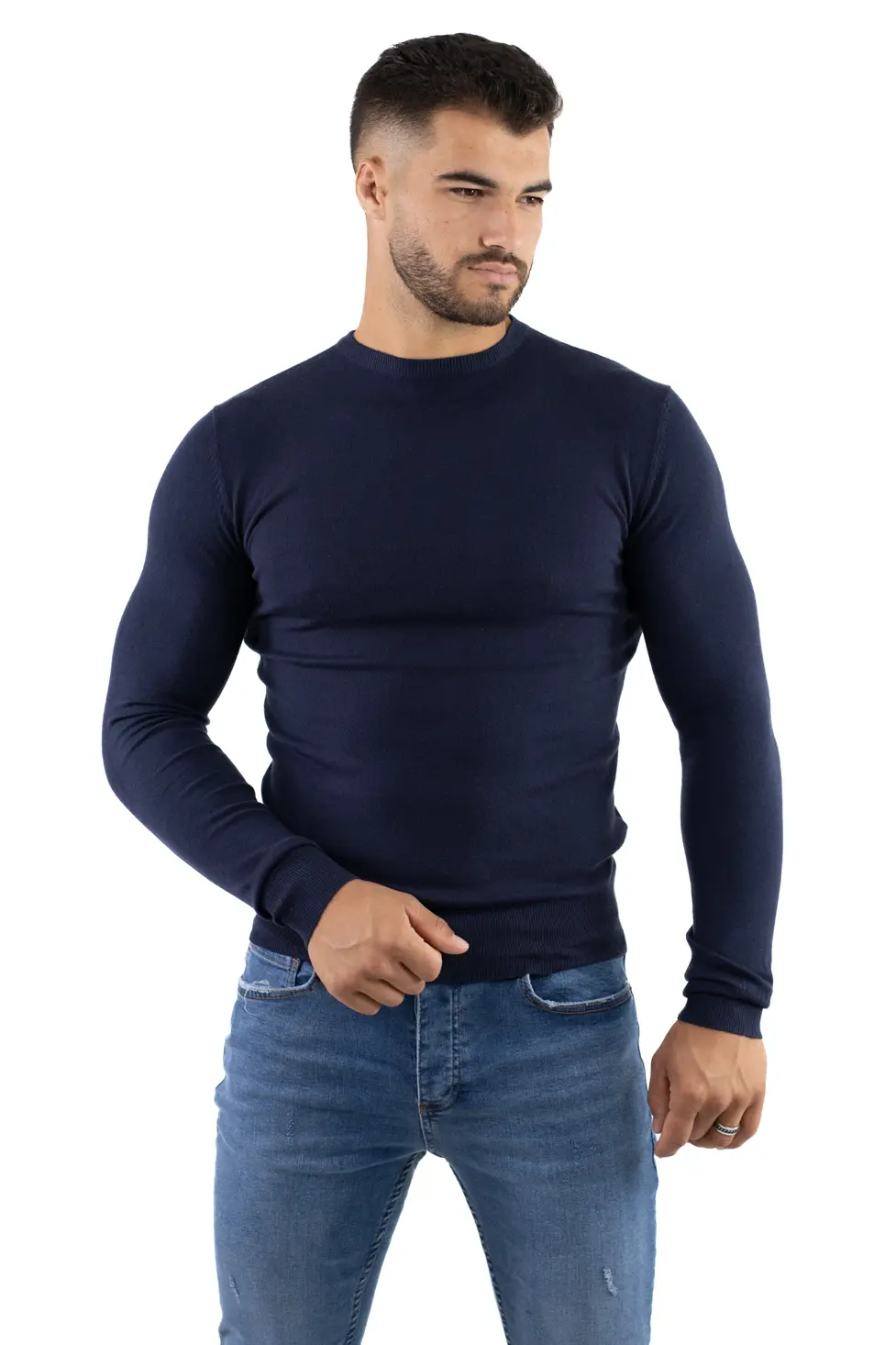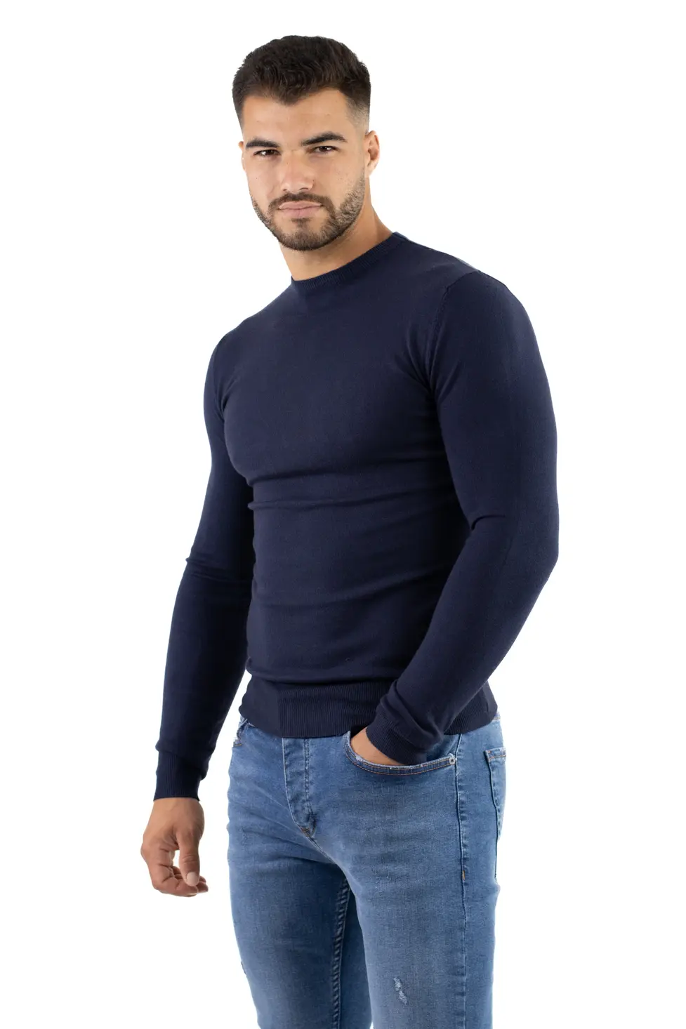 Pulover (maleta) cu croială slim fit. Guler rotund. Culoare bleumarin. Mânecă lungă. Material foarte fin la atingere, tip cașmir. Foarte confortabil datorita elasticitatii.