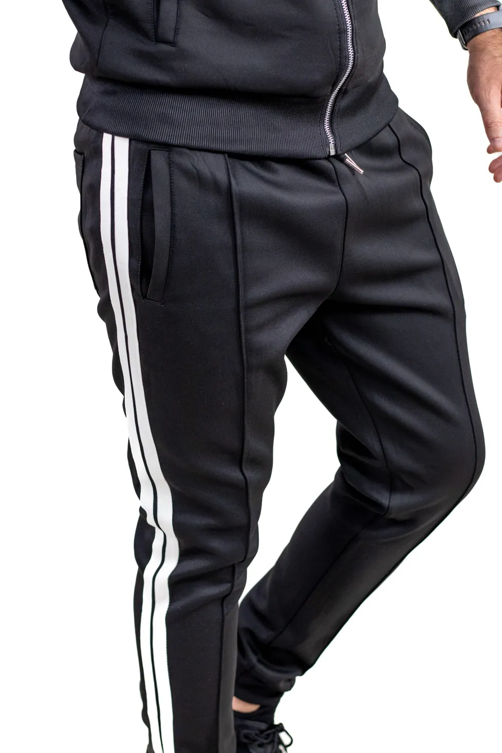 ✔️ Design modern – dungi albe contrastante pe mâneci și pantaloni