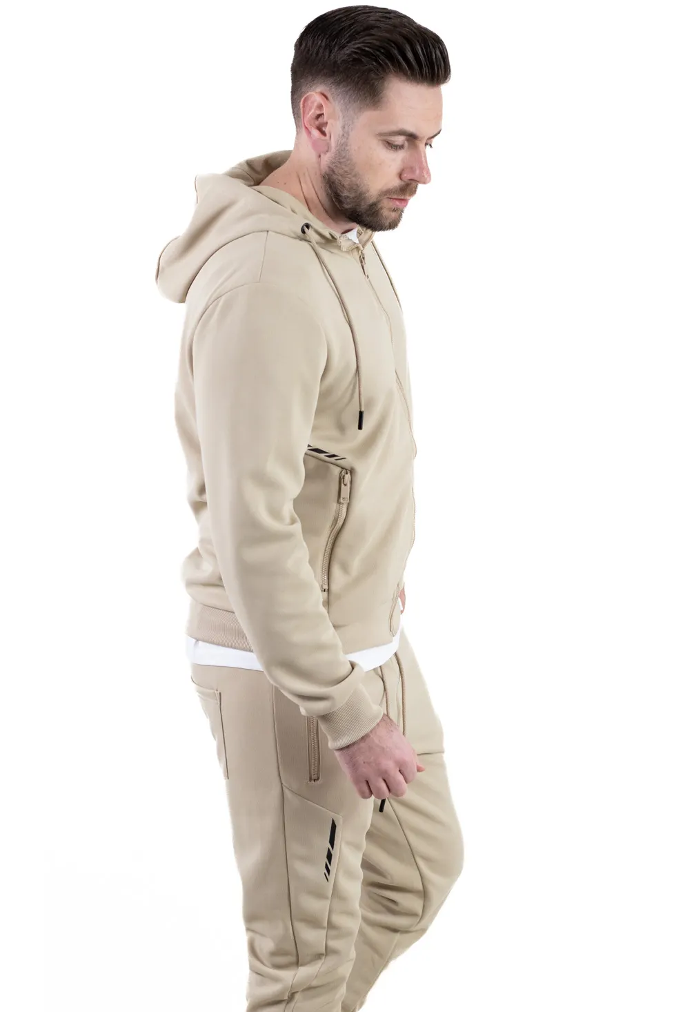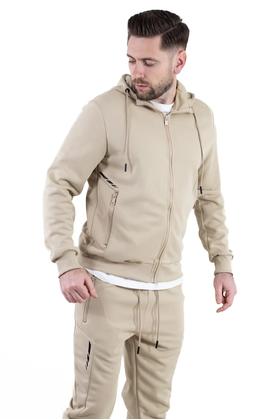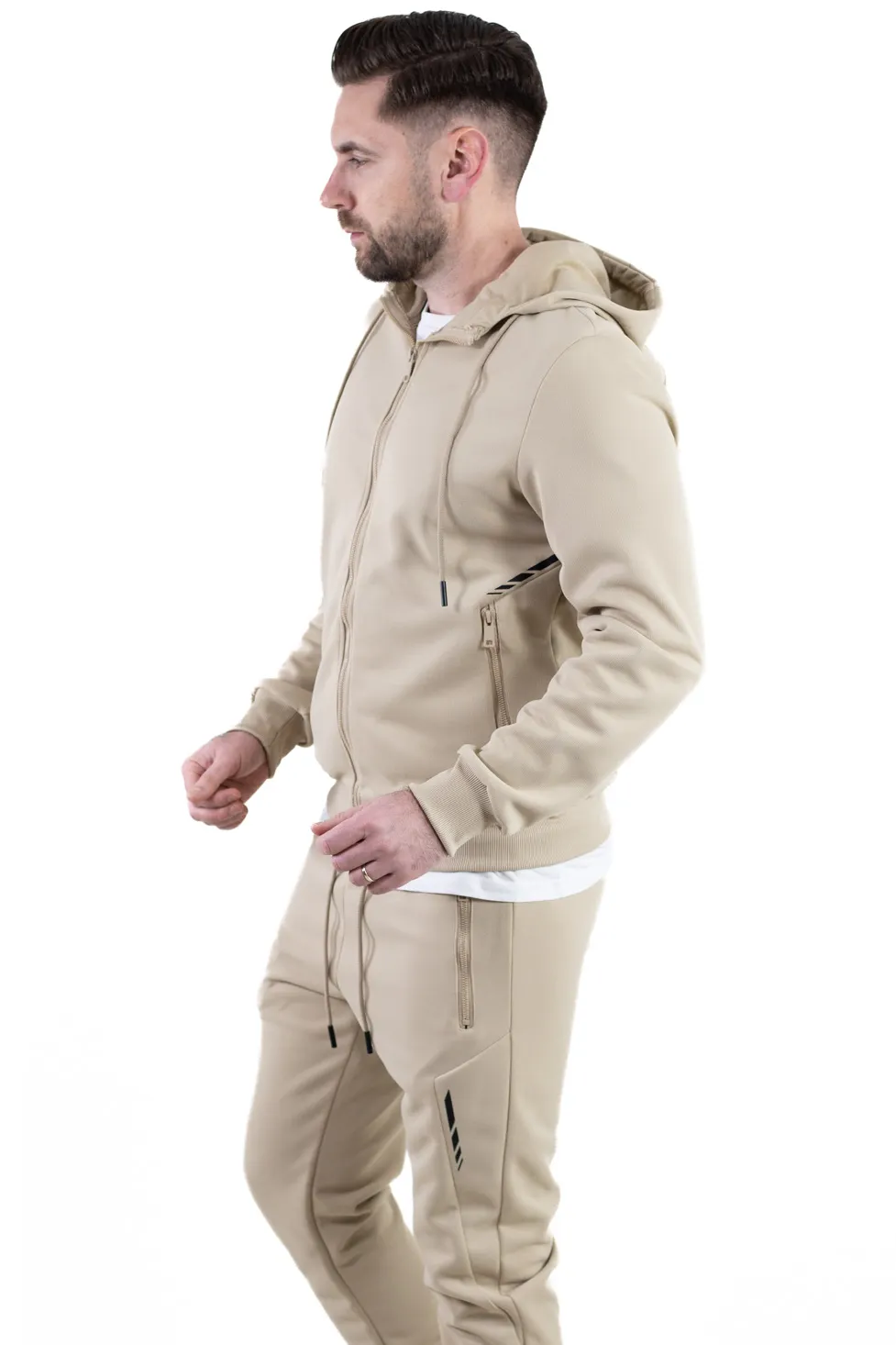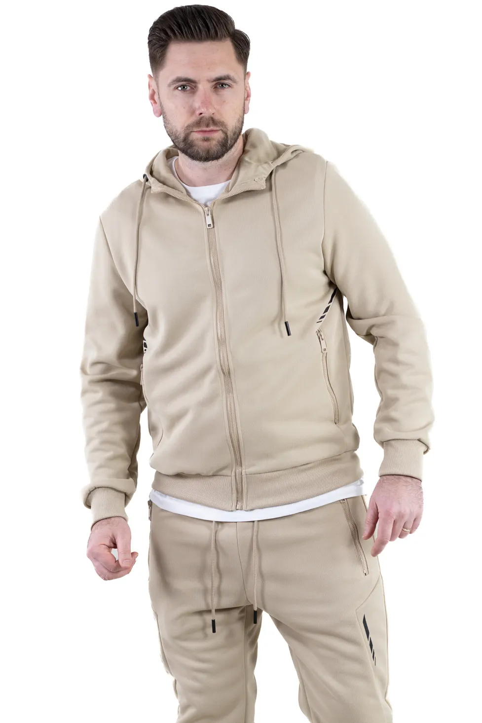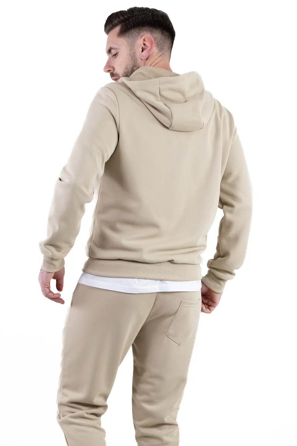 Trening pentru bărbați, format din hanorac cu glugă și pantaloni asortați, conceput pentru confort și mobilitate în purtarea zilnică. Realizat din material elastic, cu textură fină și plăcută la atingere, se adaptează bine corpului fără a limita mișcarea. Croiala este echilibrată, potrivită atât pentru activități relaxate, cât și pentru ținute casual urbane.