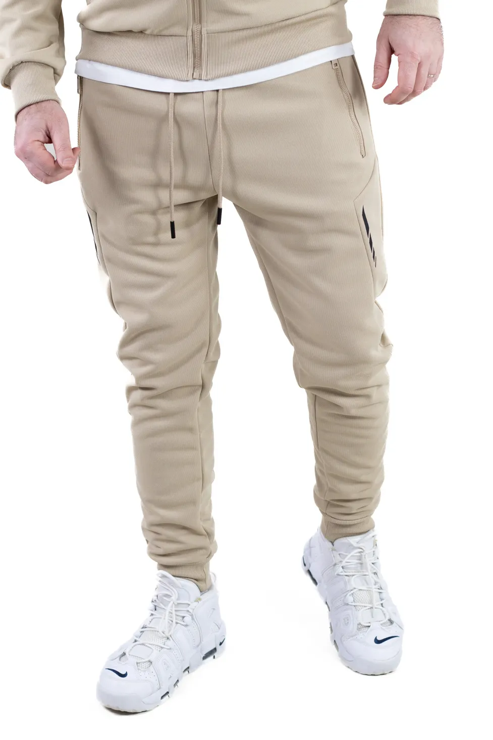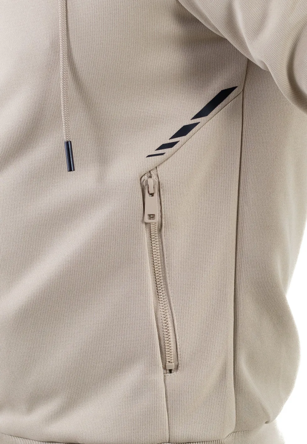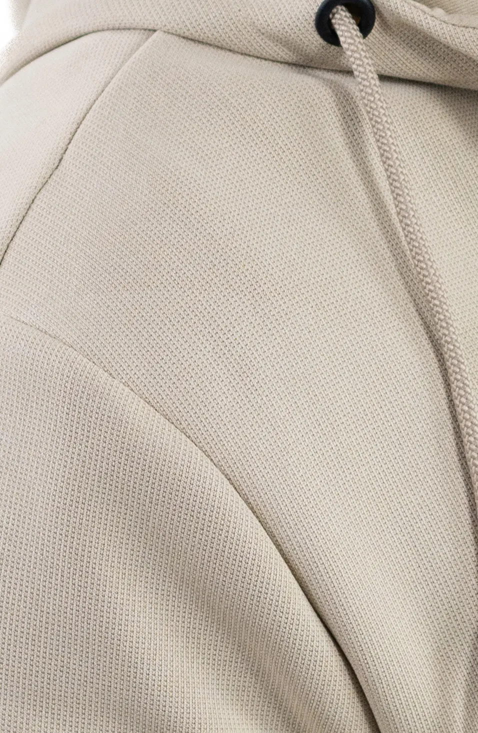 Hanoracul este prevăzut cu închidere frontală cu fermoar, glugă reglabilă cu șnur și buzunare funcționale. Pantalonii au talie elastică, se așază confortabil și sunt echipați cu buzunare practice. Detaliile discrete și liniile curate oferă un aspect modern și ușor de integrat în garderoba de zi cu zi.