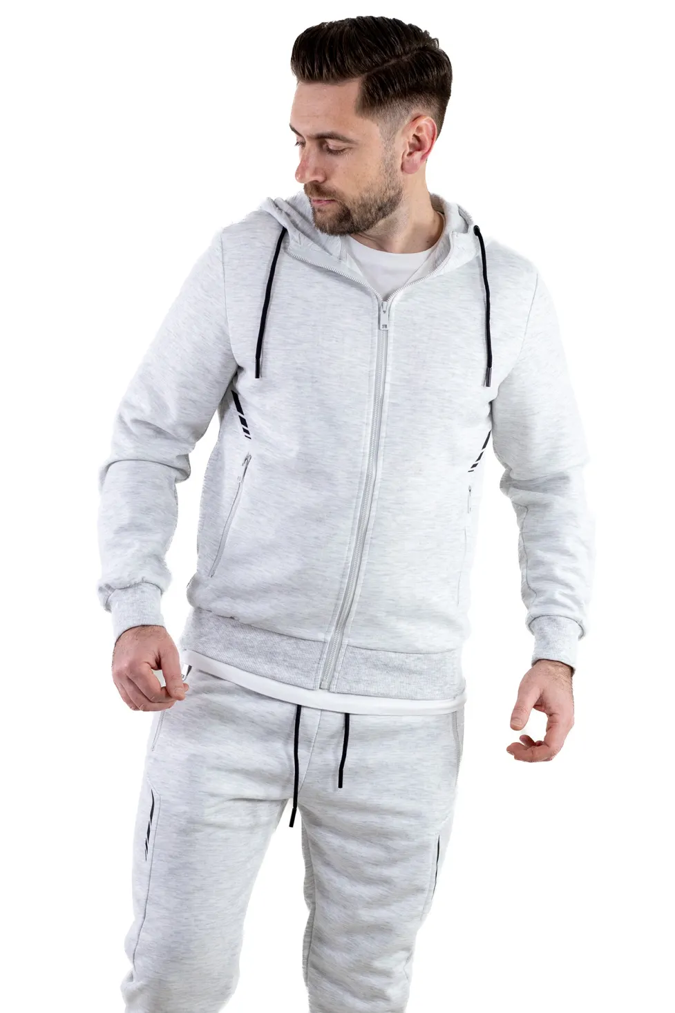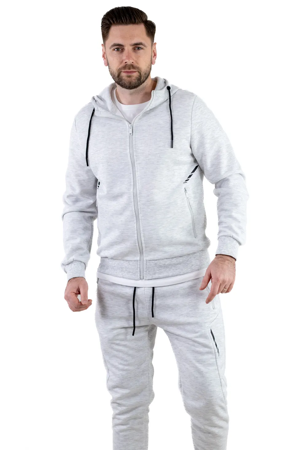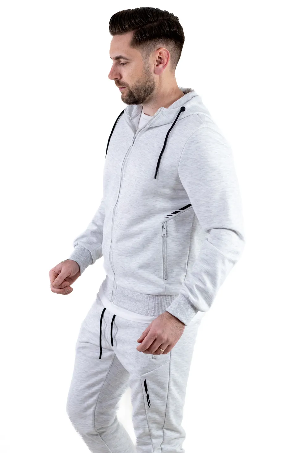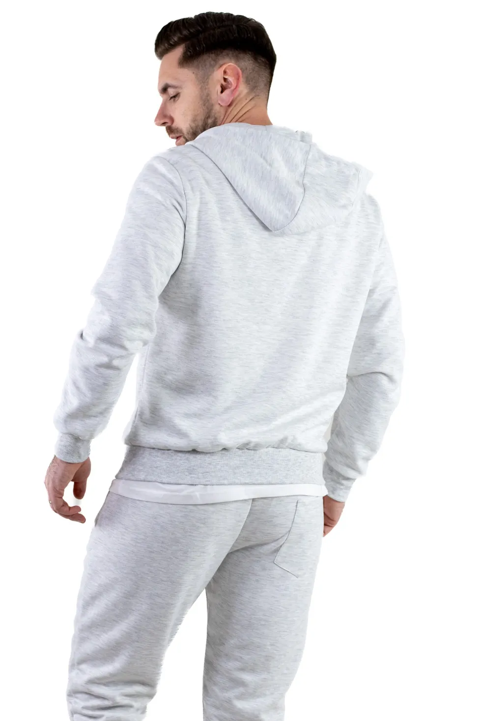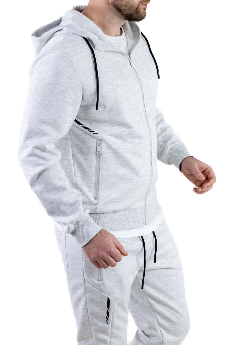 Trening pentru bărbați, format din hanorac cu glugă și pantaloni asortați, conceput pentru confort și mobilitate în purtarea zilnică. Realizat din material elastic, cu textură fină și plăcută la atingere, se adaptează bine corpului fără a limita mișcarea. Croiala este echilibrată, potrivită atât pentru activități relaxate, cât și pentru ținute casual urbane.