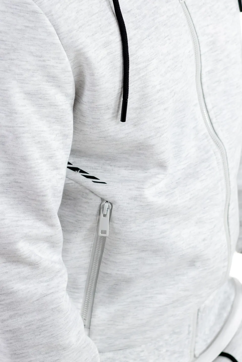 Hanoracul este prevăzut cu închidere frontală cu fermoar, glugă reglabilă cu șnur și buzunare funcționale. Pantalonii au talie elastică, se așază confortabil și sunt echipați cu buzunare practice. Detaliile discrete și liniile curate oferă un aspect modern și ușor de integrat în garderoba de zi cu zi.